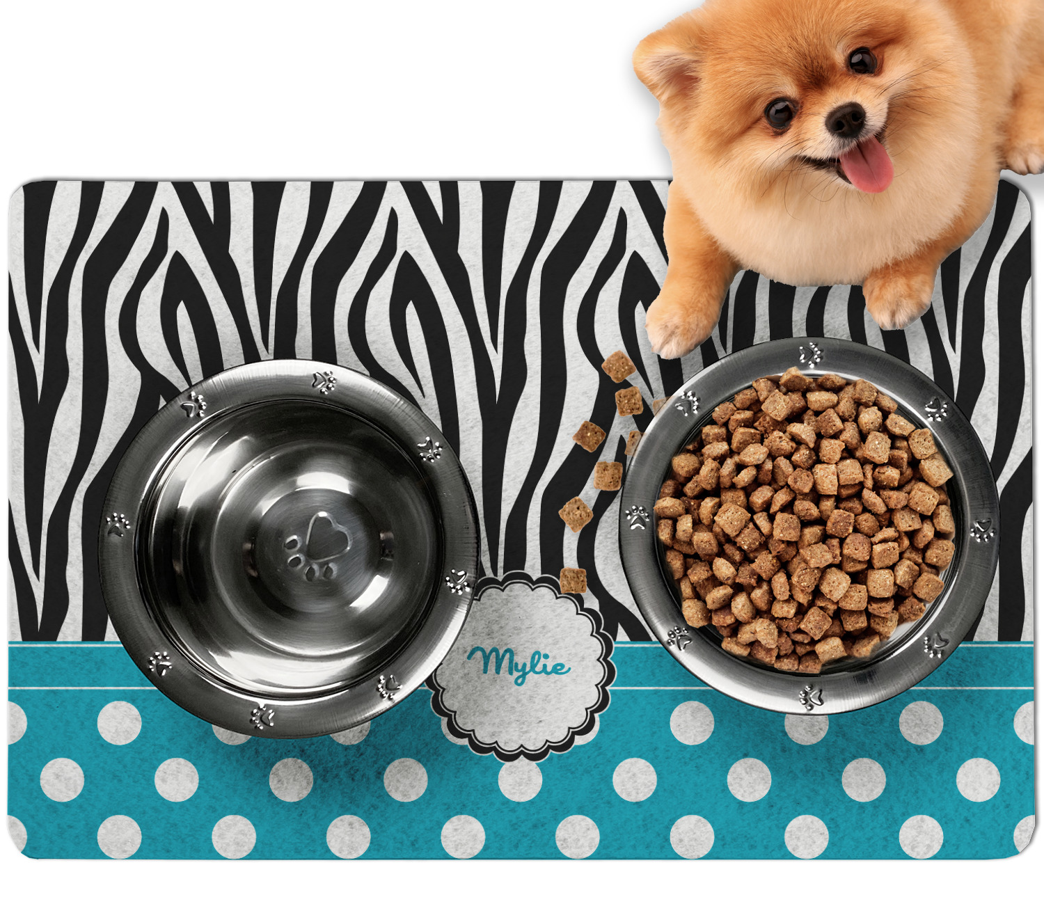 This dog bowl mat, fabricated from polyester, proudly displays your customized design on its top, while its bottom includes a non-slip rubber. This feature allows it to remain firmly in place, even when your dog spills his/her water. With 3 sizes available (18" x 12", 24" x 18", 30" x 24"), the pet food mat has ample space for both a food and water bowl for any sized dogs. Though specified for dogs' use, these mats are also a splendid option for cats.