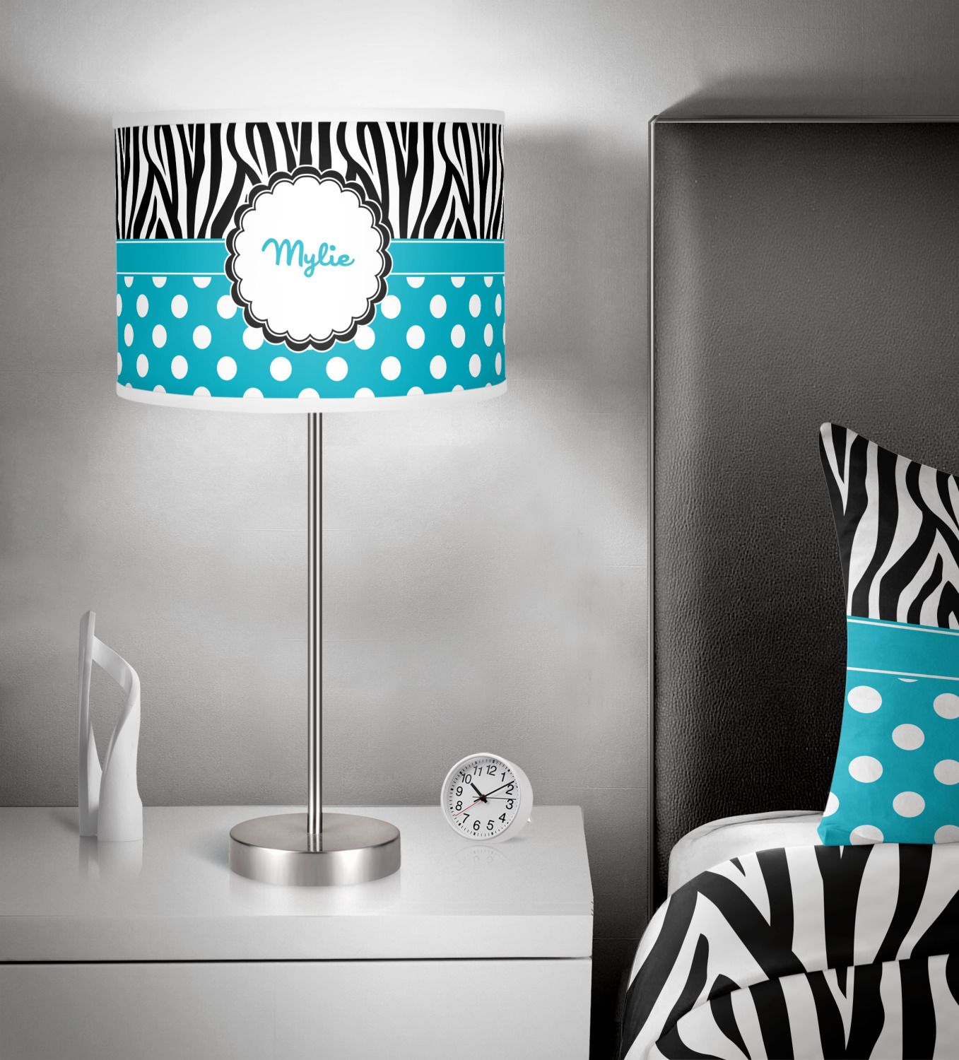 Here is a wonderful zebra print with a fun, modern twist. The top of this design features a black and white traditional zebra print. To add color and flair you can pair the zebra pattern with your choice of color and white polka dot pattern on the bottom.