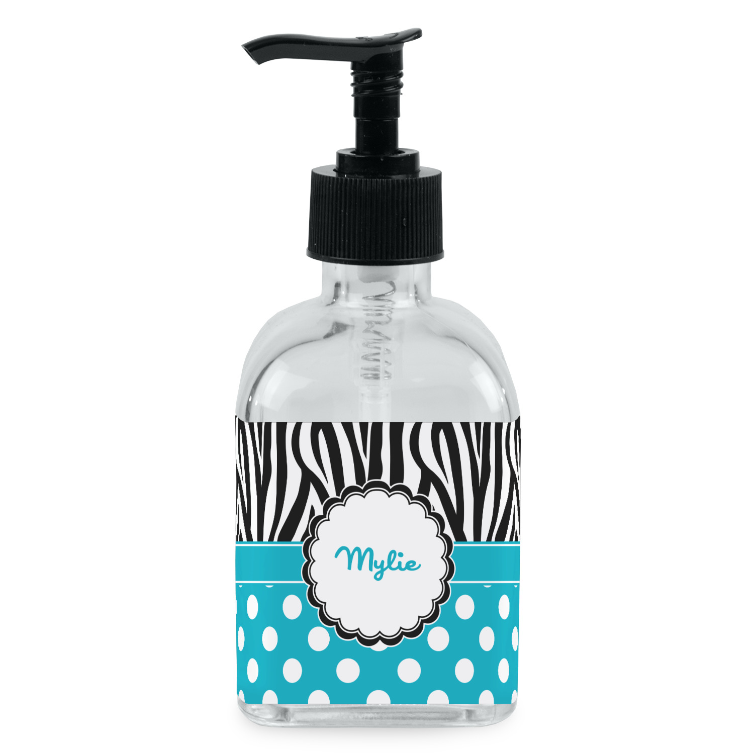 Crafted from a high-quality glass, these soap dispensers and lotion dispensers are durable and robust, while still looking elegant. They are sold with black pumps. Each soap dispenser pump measures at 6.5 by 2.25 inches. On these soap pumps, we display your customized design on a personalized vinyl adhesive on three sides. That way, you can judge how much liquid is in the bottles from the back.