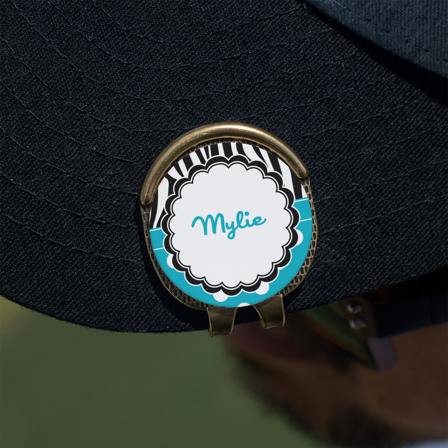 This round shaped little clip is simply 1.25" x 1.5". A clip wraps around to the back of the ball marker holder in order to be able to clip it to the bill of your hat or even your belt. The metal ball marker attaches by a magnet on the clip. Available in stainless steel natural finish or gold finish, you are sure to find one to suit your style. This makes for convenient removal when you need to use it. No more digging in your bag or pockets trying to find it!