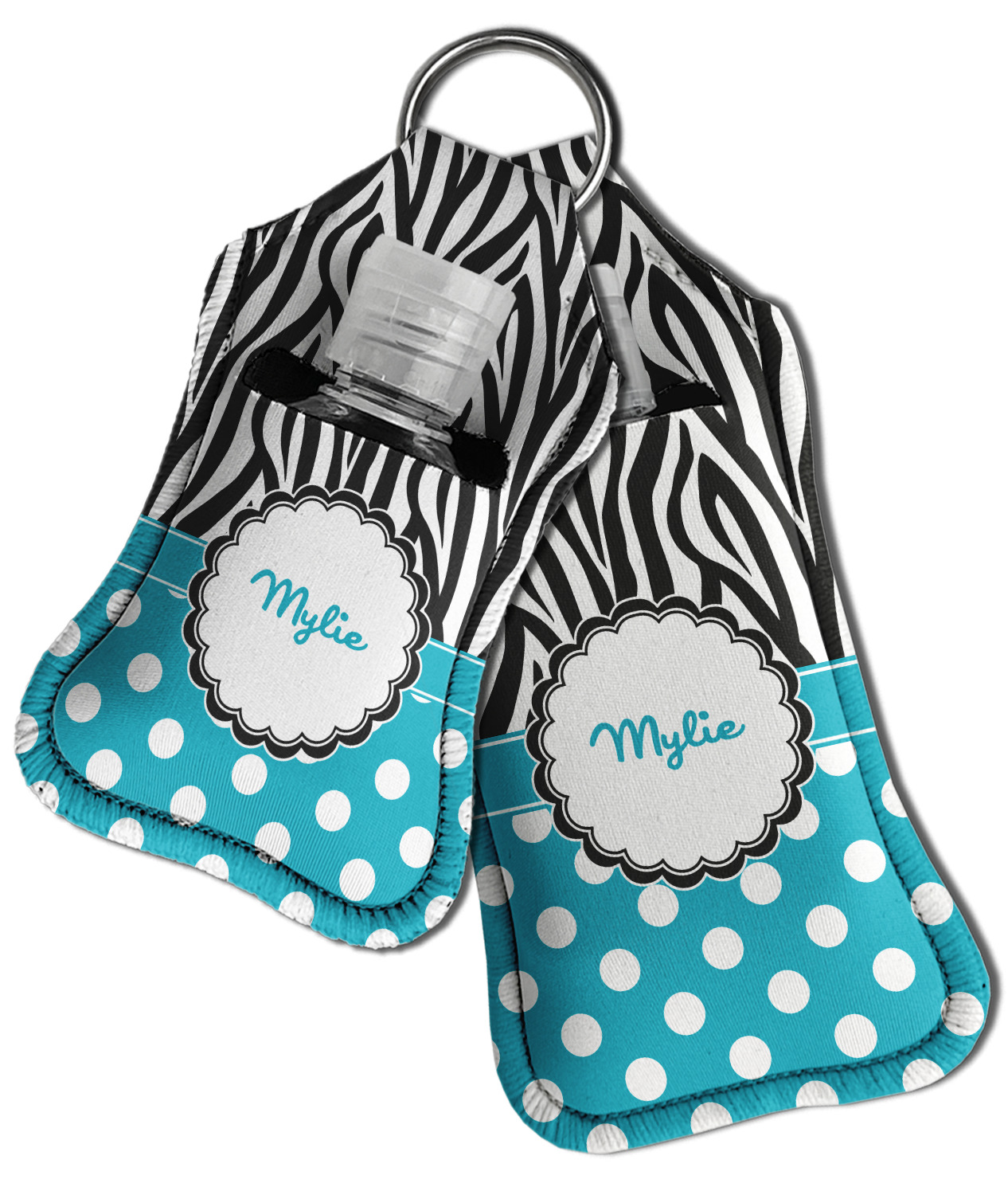 Each hand sanitizer holder comes with its own empty travel-sized, refillable hand sanitizer sure to fit snug in your customized sanitizer case! Our hand sanitizer cases are a durable, yet soft neoprene material sure to last any daily activities or travel agenda. Customize and personalize a hand sanitizer bottle holder with one of our two sizes - small (4.25" x 2.25") or large (5.5" x 2.5"). Each travel sanitizer holder comes with a keyring for attachment on bags, keys, or more!