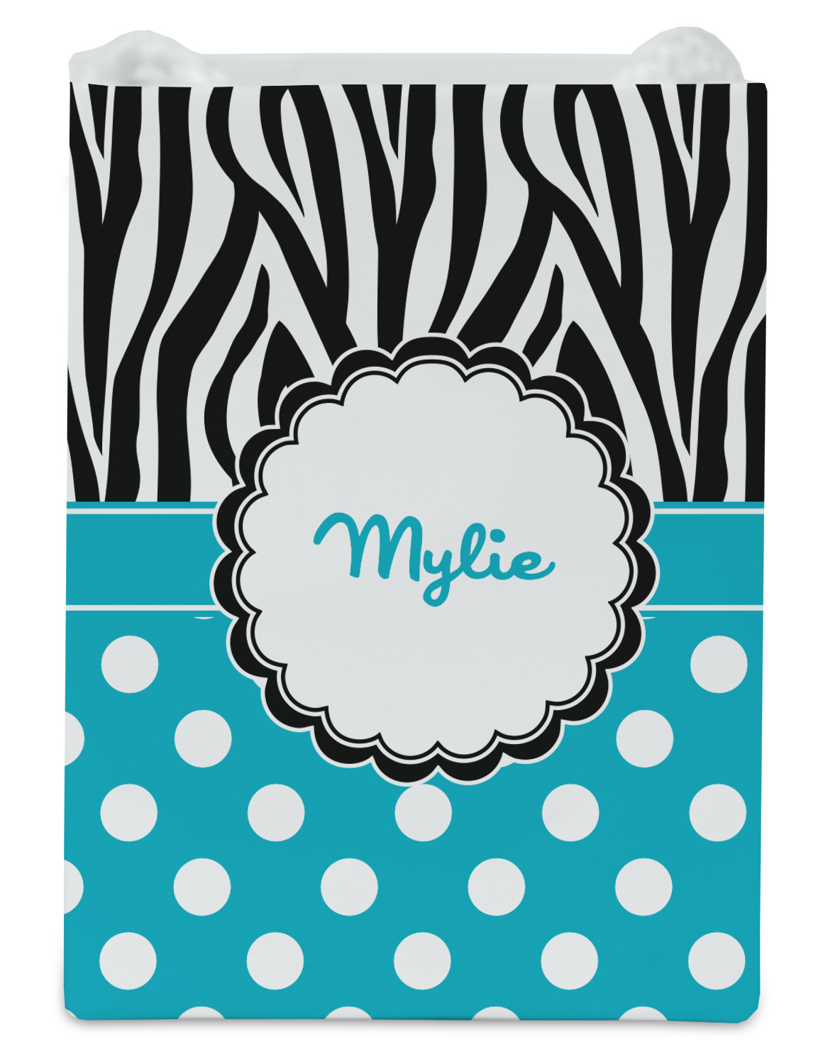 Here is a wonderful zebra print with a fun, modern twist. The top of this design features a black and white traditional zebra print. To add color and flair you can pair the zebra pattern with your choice of color and white polka dot pattern on the bottom.