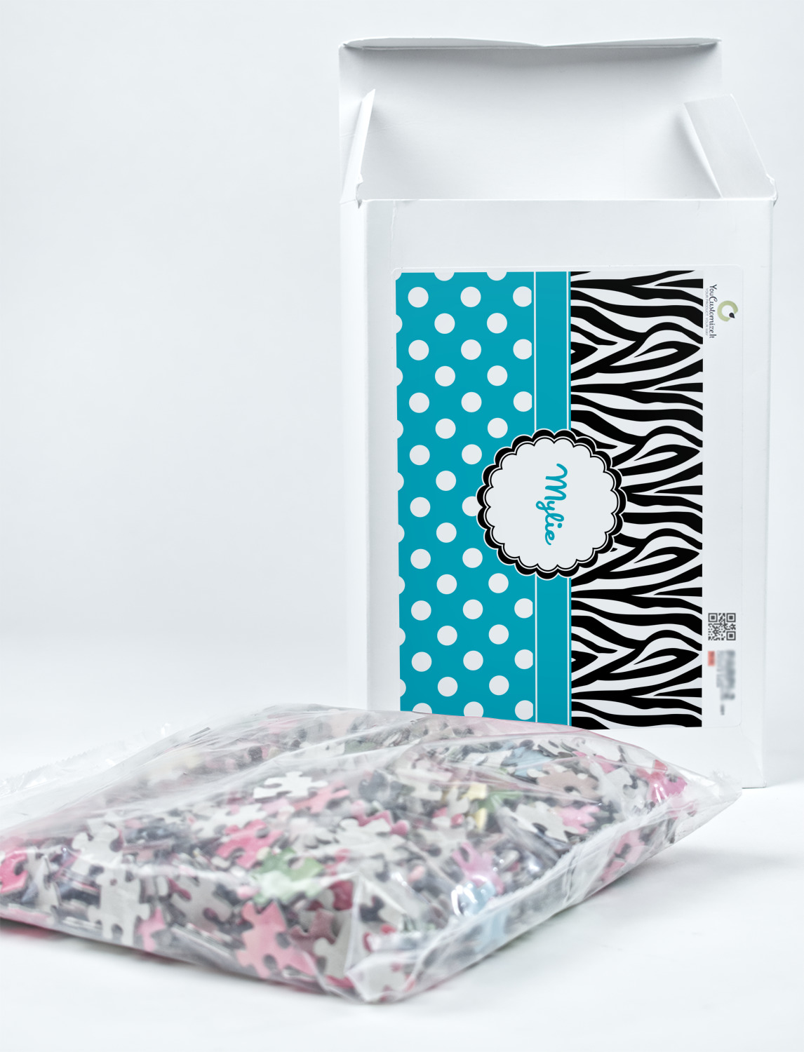 You can also upload your logo or art that you or your kids drew. To create more challenging jigsaw puzzles, you can create a pattern from with your logo or artwork. You can also add other elements such as text or personalization.