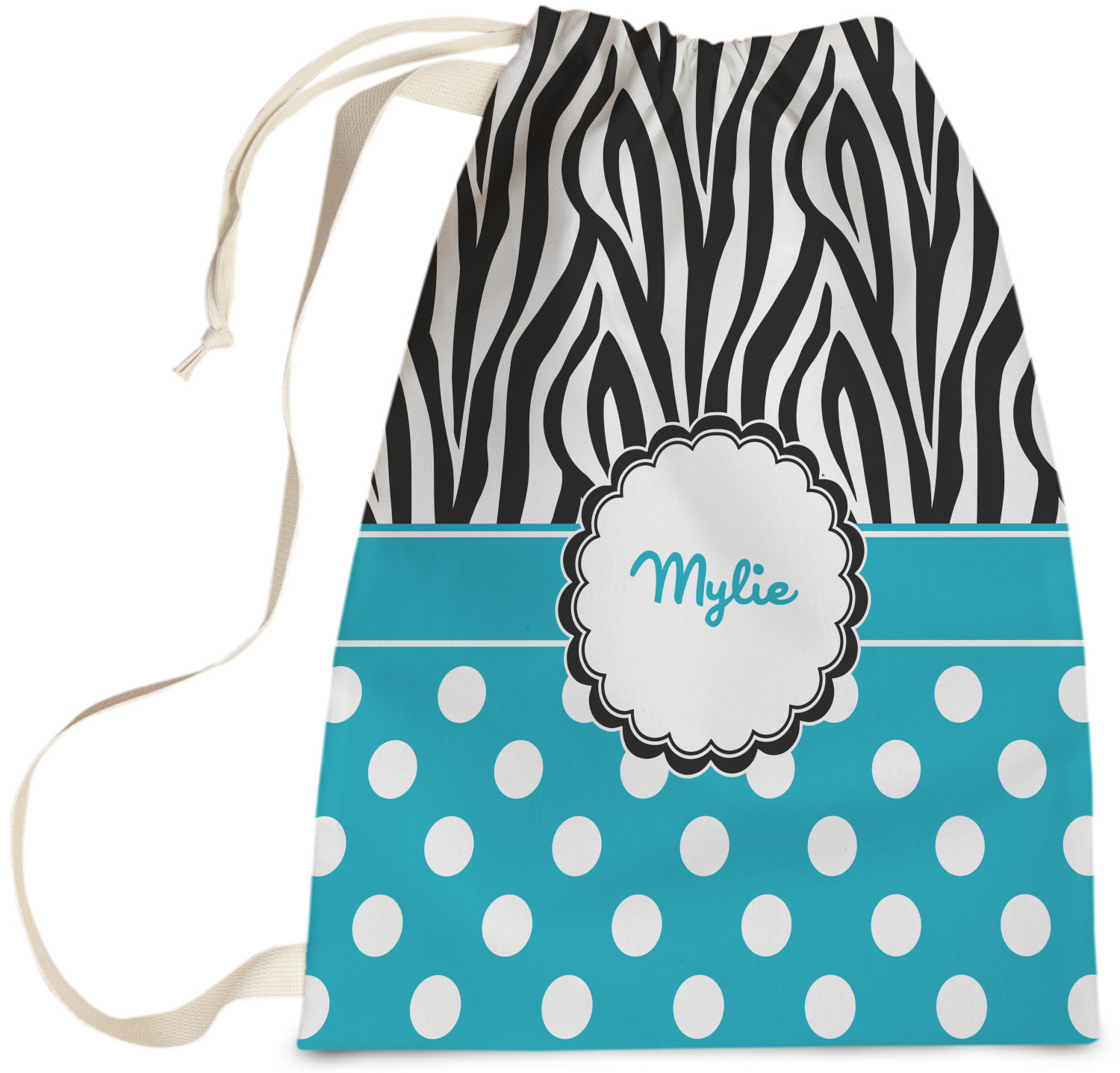 Carry your laundry in style with these customized laundry bags. Available in two sizes, featuring a natural colored woven strap and a cinch cord, these bags hold a lot of clothes or anything else you want to fit in them.