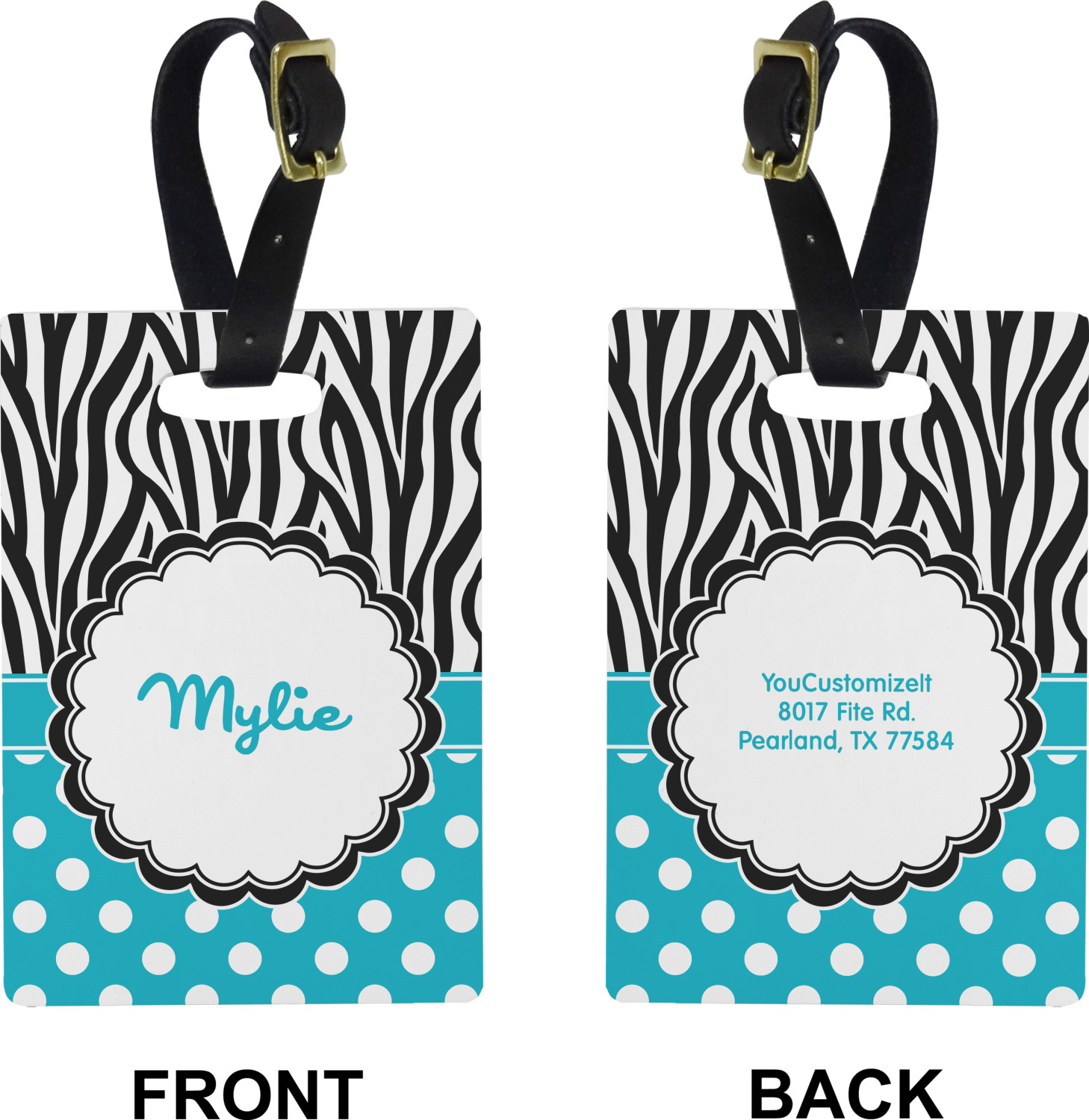 These cute luggage tags are made of a fiber-reinforced, UV-resistant plastic, making them waterproof and durable enough for both everyday use and the rugged adventures of any traveler! A leather strap with holes and a buckle is included with your purchase and can be used to attach your custom luggage tag to any suitcase, backpack, or duffel bag. You can design these travel tags as you wish; your customization will be displayed across the front, while the back will show as little or as much personal information as you want.