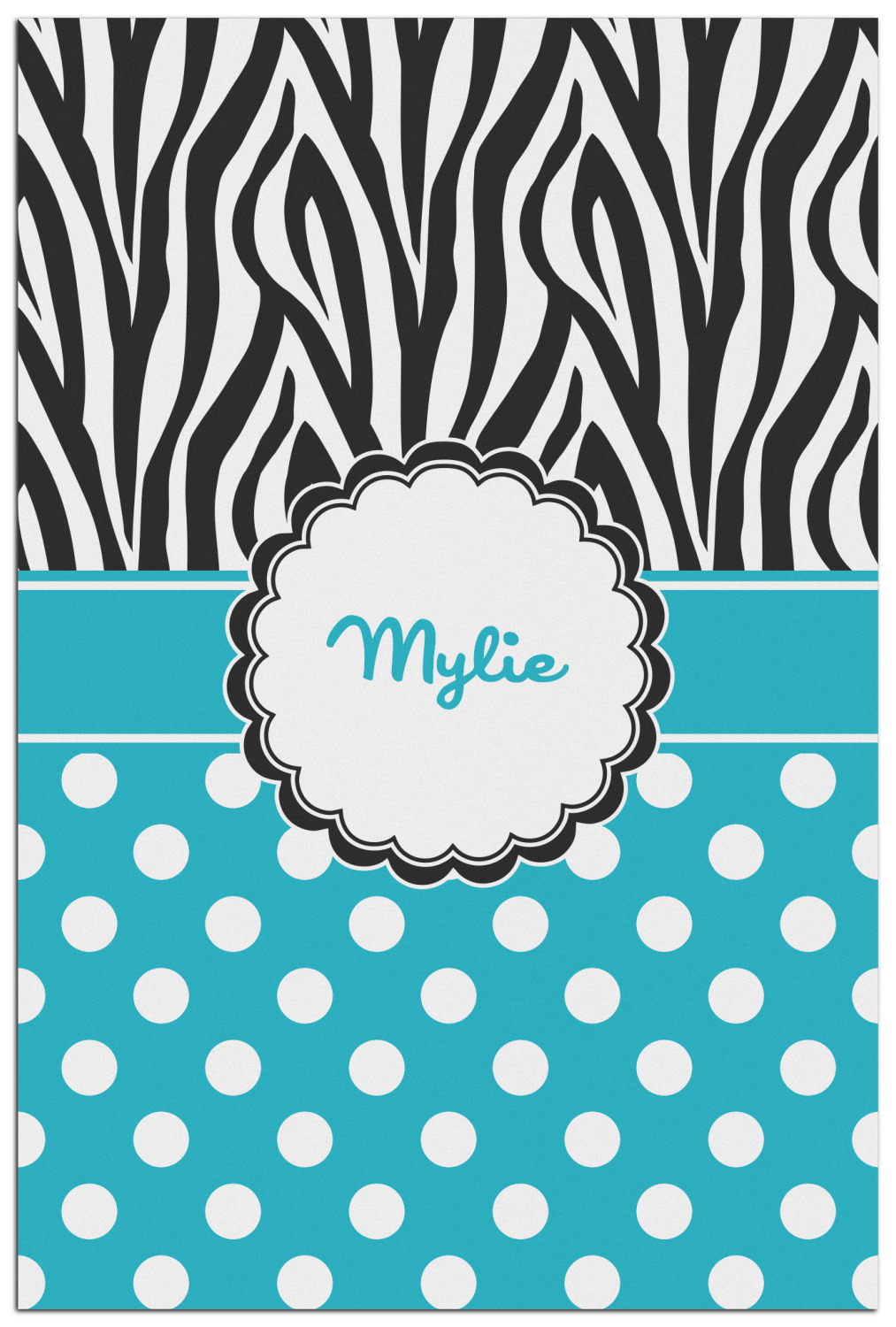 Here is a wonderful zebra print with a fun, modern twist. The top of this design features a black and white traditional zebra print. To add color and flair you can pair the zebra pattern with your choice of color and white polka dot pattern on the bottom.