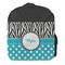 A white scalloped circle label edged in black highlights the personalization of your choice. A wide matching color band trimmed in white completes the design.