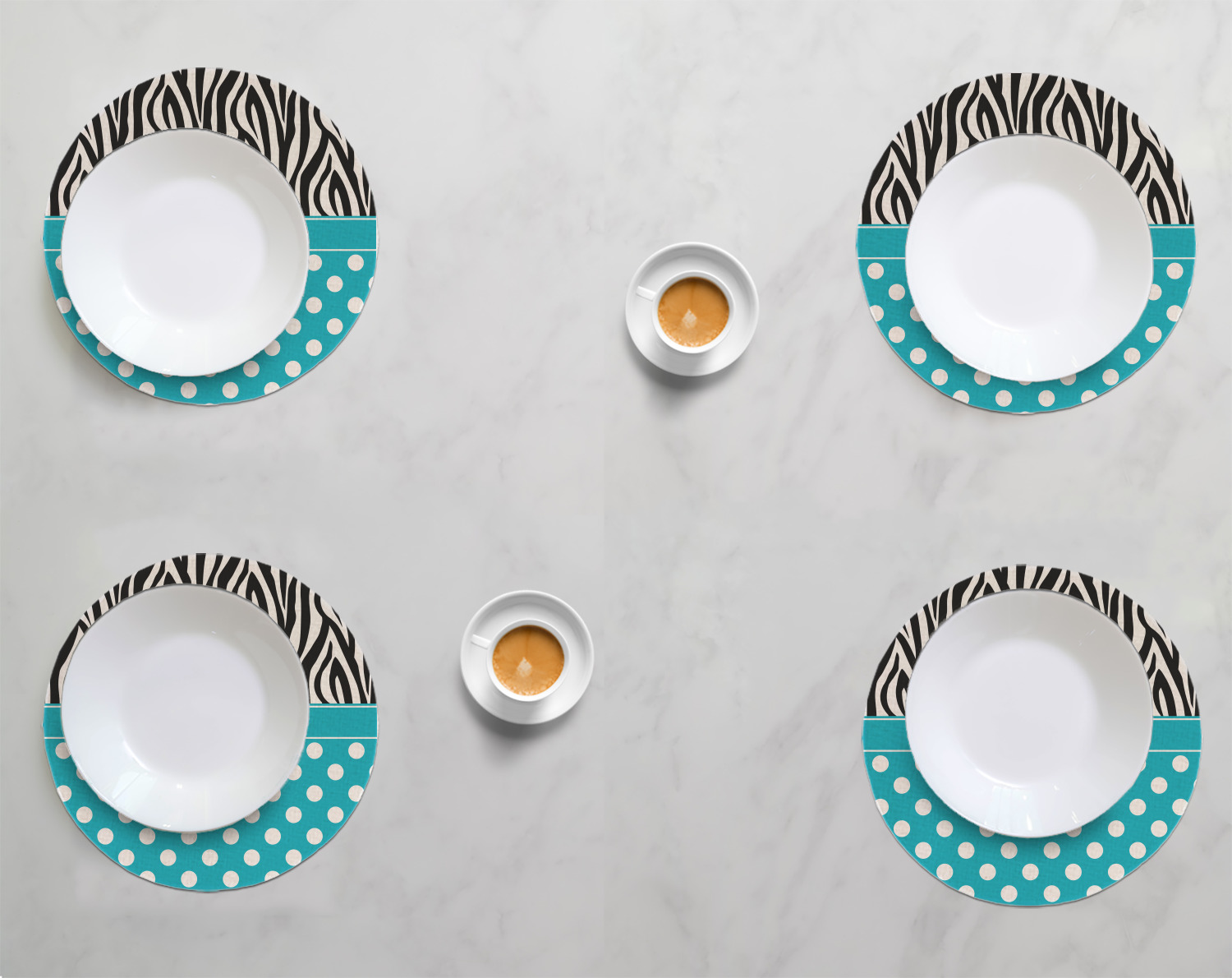 Here is a wonderful zebra print with a fun, modern twist. The top of this design features a black and white traditional zebra print. To add color and flair you can pair the zebra pattern with your choice of color and white polka dot pattern on the bottom.