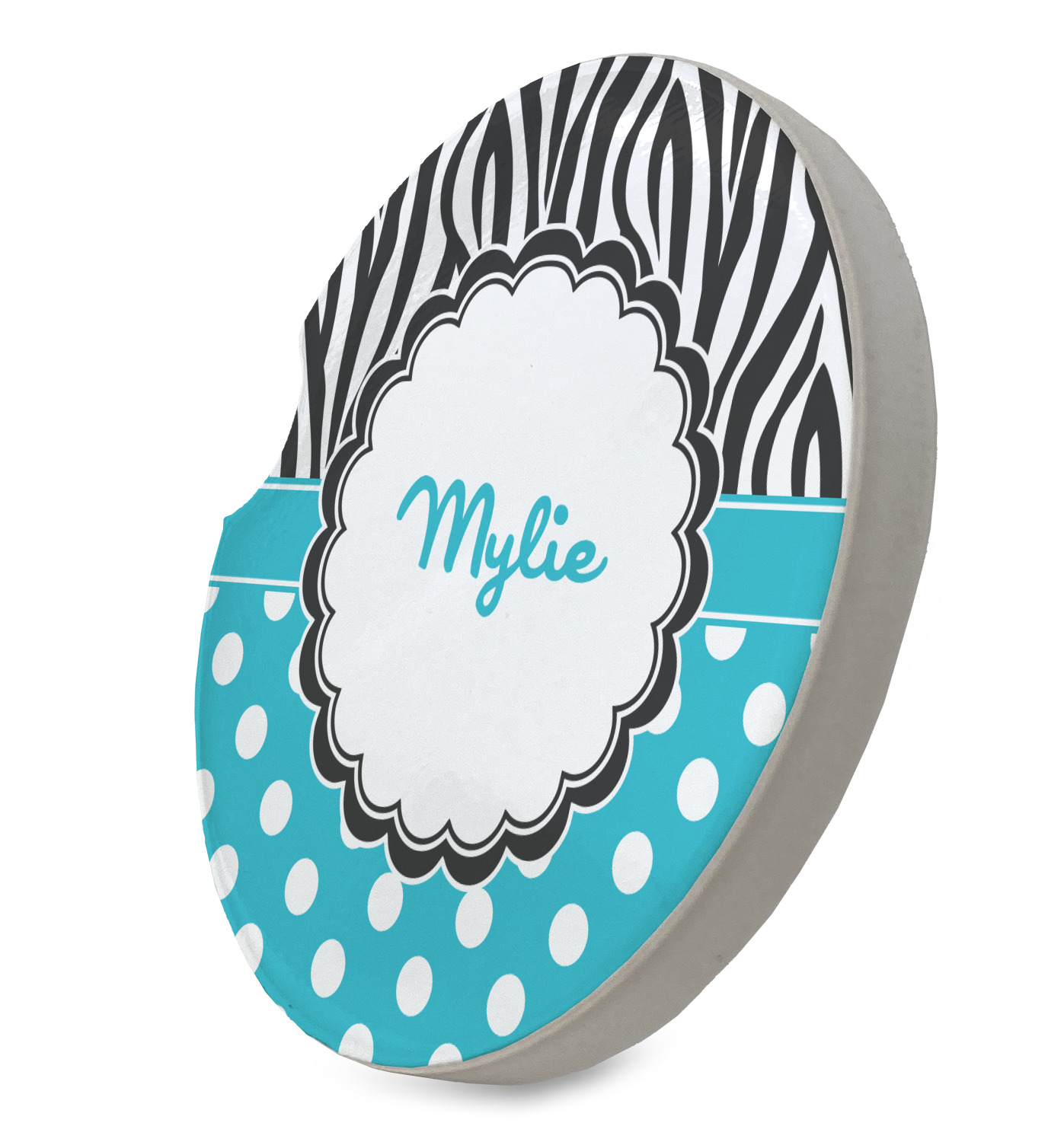 These sandstone coasters are round, robust, and feature a smoothed glossy side to exhibit your customized design. With a 2.5 inch diameter, these stone coasters will fit snugly inside most cup holders. This model also features a semi-circle shaped divot that allows for easy removal, despite the tight fit. You can purchase these car cup holder coasters in a pair, or singularly, depending on your needs.
