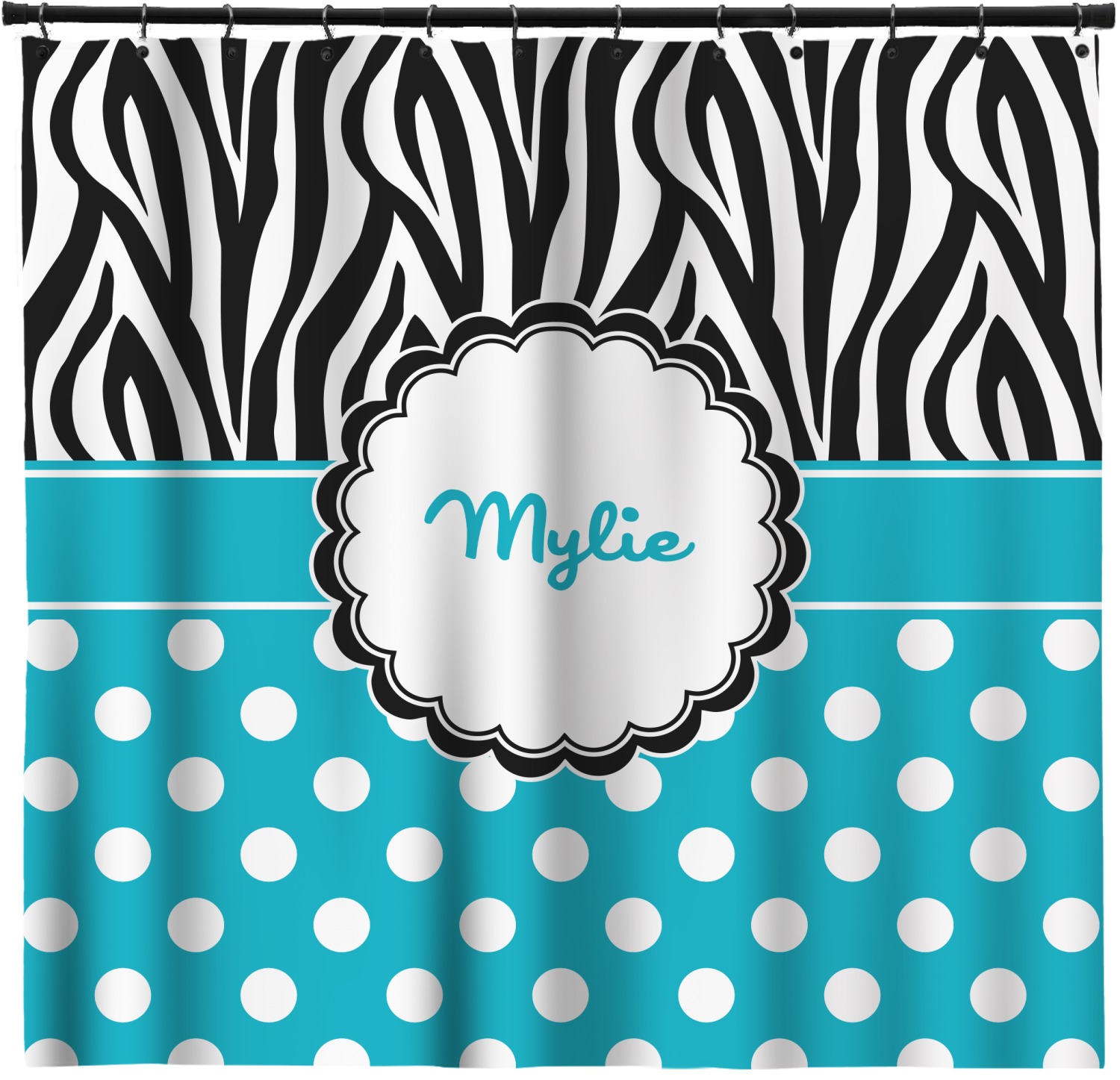 Here is a wonderful zebra print with a fun, modern twist. The top of this design features a black and white traditional zebra print. To add color and flair you can pair the zebra pattern with your choice of color and white polka dot pattern on the bottom.