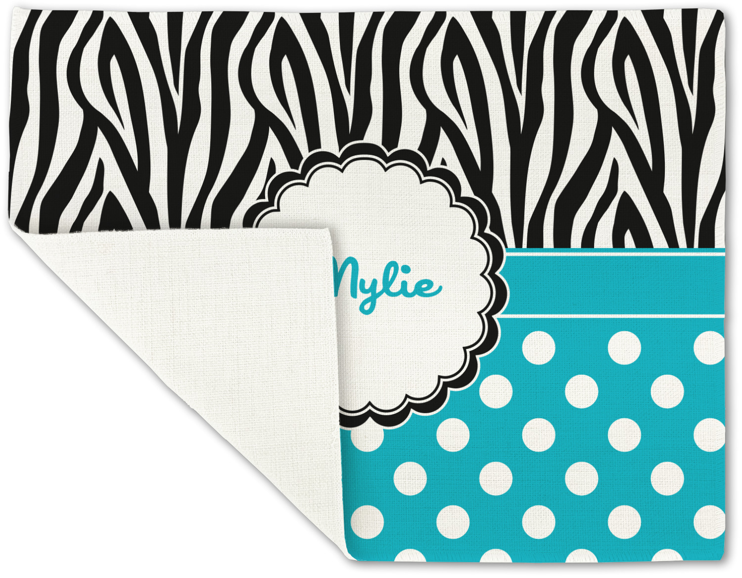 Here is a wonderful zebra print with a fun, modern twist. The top of this design features a black and white traditional zebra print. To add color and flair you can pair the zebra pattern with your choice of color and white polka dot pattern on the bottom.