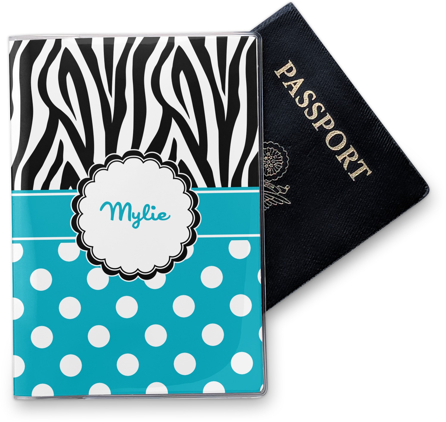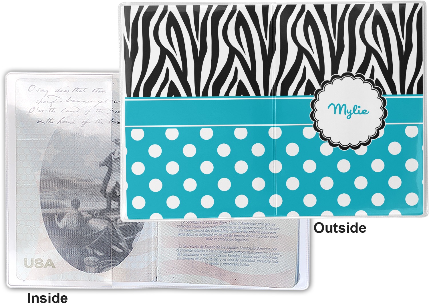 This cover is made of a sturdy clear vinyl with a personalized vinyl insert inside. There is a large and a small pocket on either side to hold the covers of your passport easily and firmly. The passport holder is approximately 7.5" x 5.25", the perfect size to snugly fit your passport. This slim cover is the perfect way to protect your passport without being one more bulky item you have to carry.