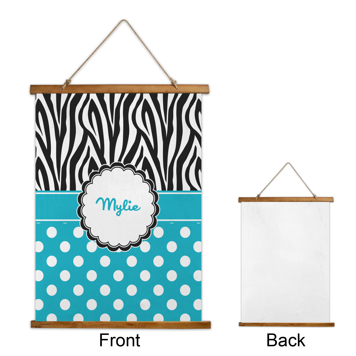 Made in two different orientations - portrait or landscape - both are 26" x 36". Your design is printed on a high quality polyester fabric with hemmed edges. The wood on the top and bottom of the tapestry is 1.25" tall and 0.25" thick and there are two pieces on top and bottom which sandwich the fabric.