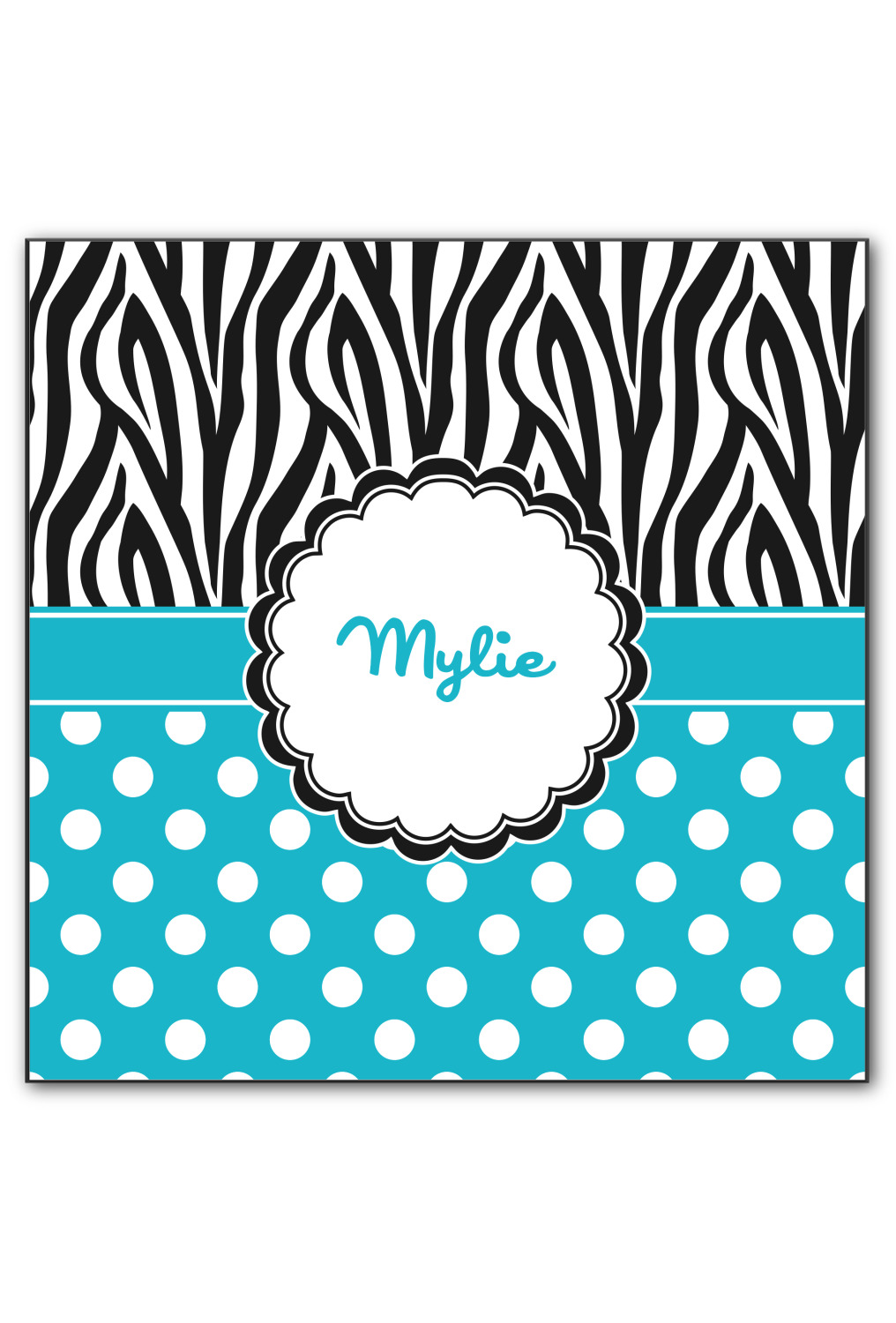 Here is a wonderful zebra print with a fun, modern twist. The top of this design features a black and white traditional zebra print. To add color and flair you can pair the zebra pattern with your choice of color and white polka dot pattern on the bottom.