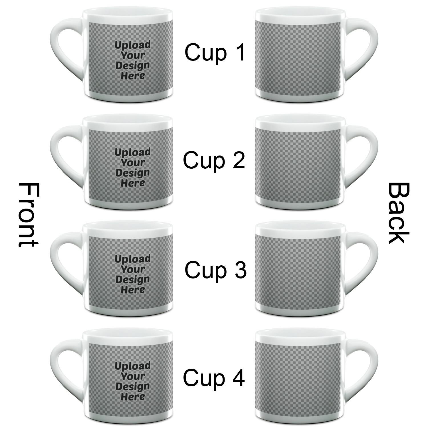 Pinkies out! Sip your favorite espresso with our personalized espresso cups! Our cute little espresso mugs are ideal for that morning shot of caffeine before you start your day! Make your mugs extra special by creating your own custom-designed espresso cup. Use our online design studio to customize designs, create your own, or upload a photo!