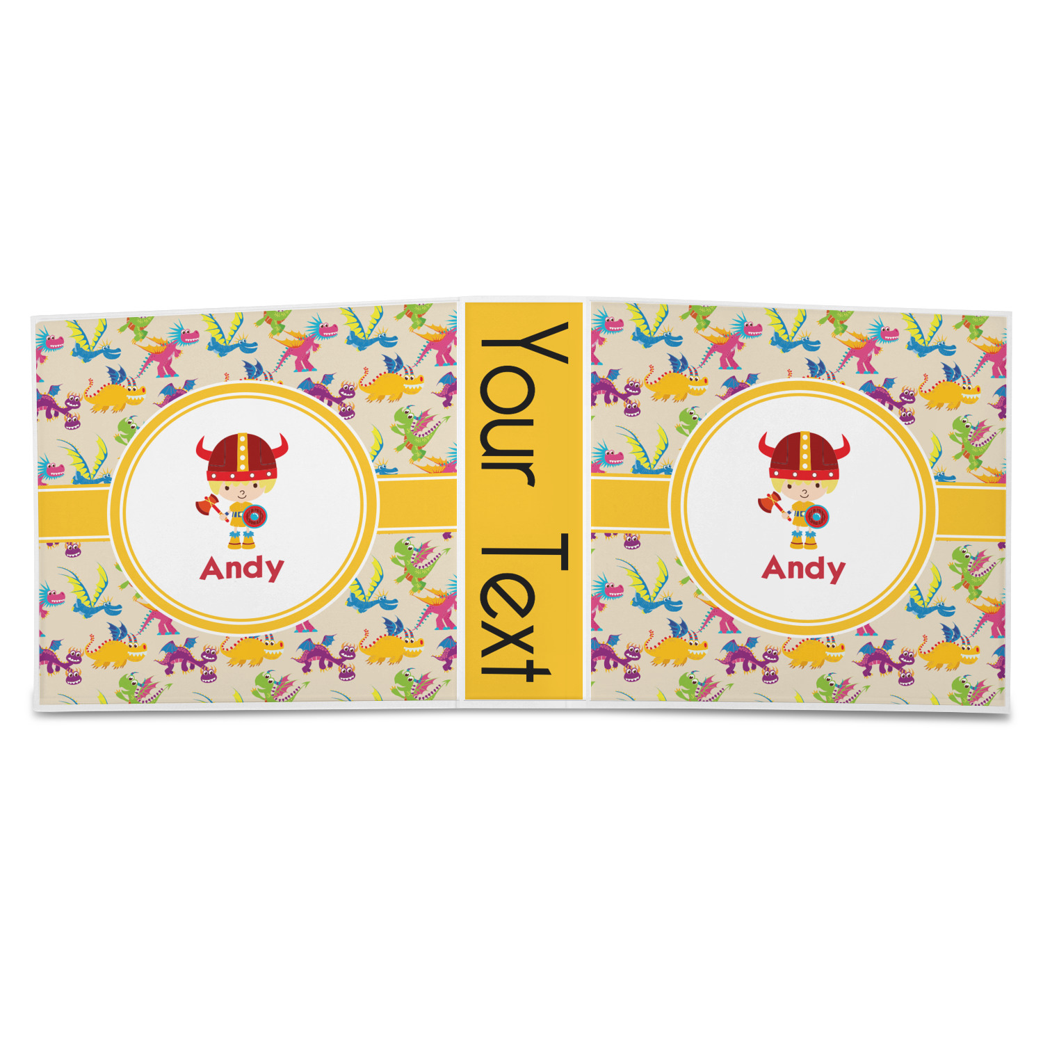 A white outlined yellow band with a yellow circle label highlights the little dragon slayer. Change the hair color to match your little guy and add his name to make this a fun design for all dragon lovers.