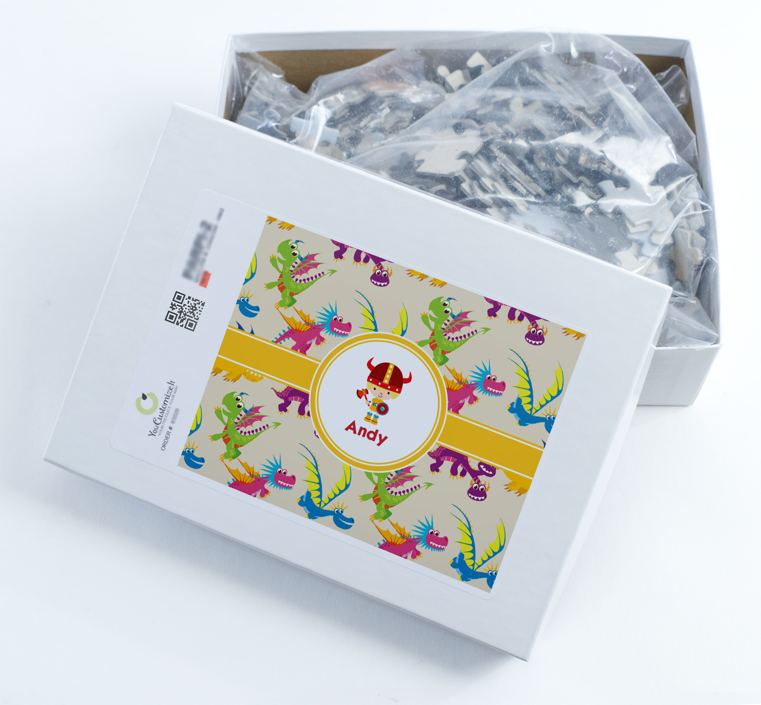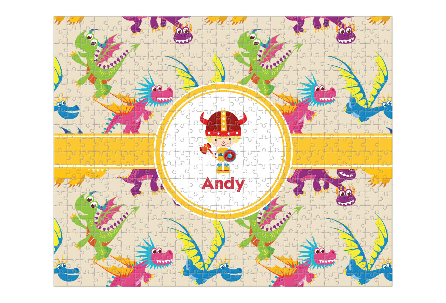 You can also upload your logo or art that you or your kids drew. To create more challenging jigsaw puzzles, you can create a pattern from with your logo or artwork. You can also add other elements such as text or personalization.