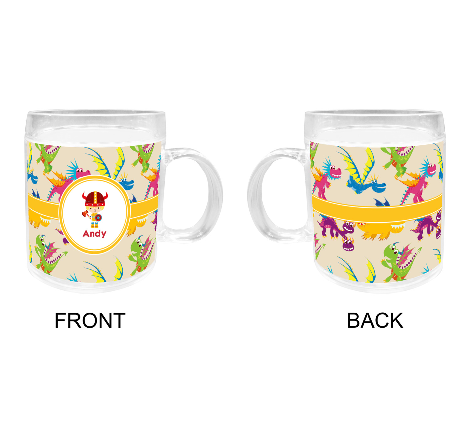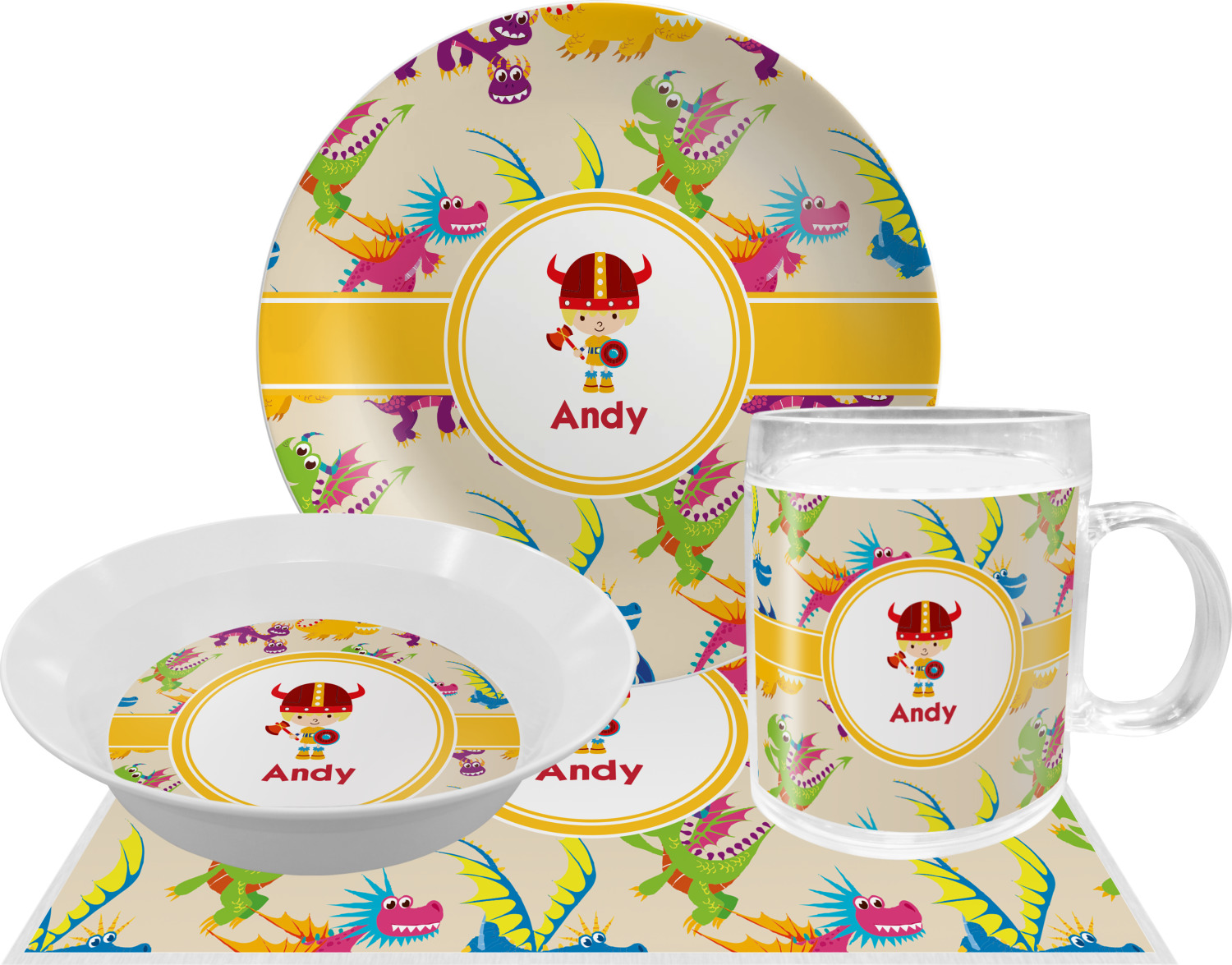 A white outlined yellow band with a yellow circle label highlights the little dragon slayer. Change the hair color to match your little guy and add his name to make this a fun design for all dragon lovers.