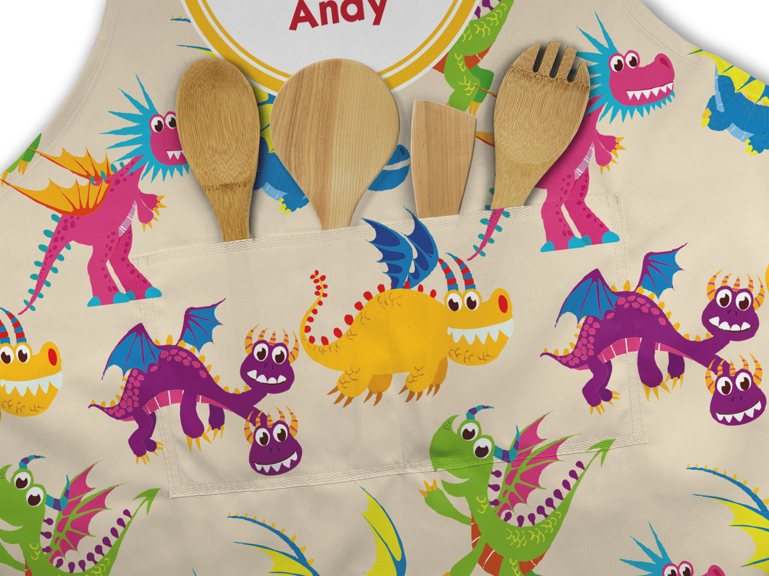 A white outlined yellow band with a yellow circle label highlights the little dragon slayer. Change the hair color to match your little guy and add his name to make this a fun design for all dragon lovers.