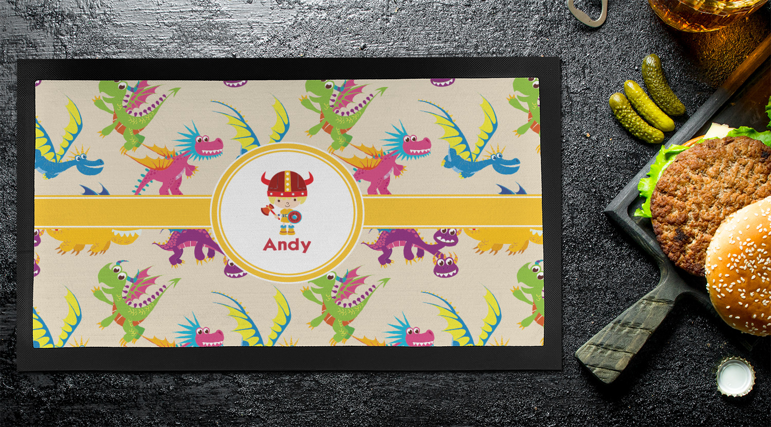 A white outlined yellow band with a yellow circle label highlights the little dragon slayer. Change the hair color to match your little guy and add his name to make this a fun design for all dragon lovers.