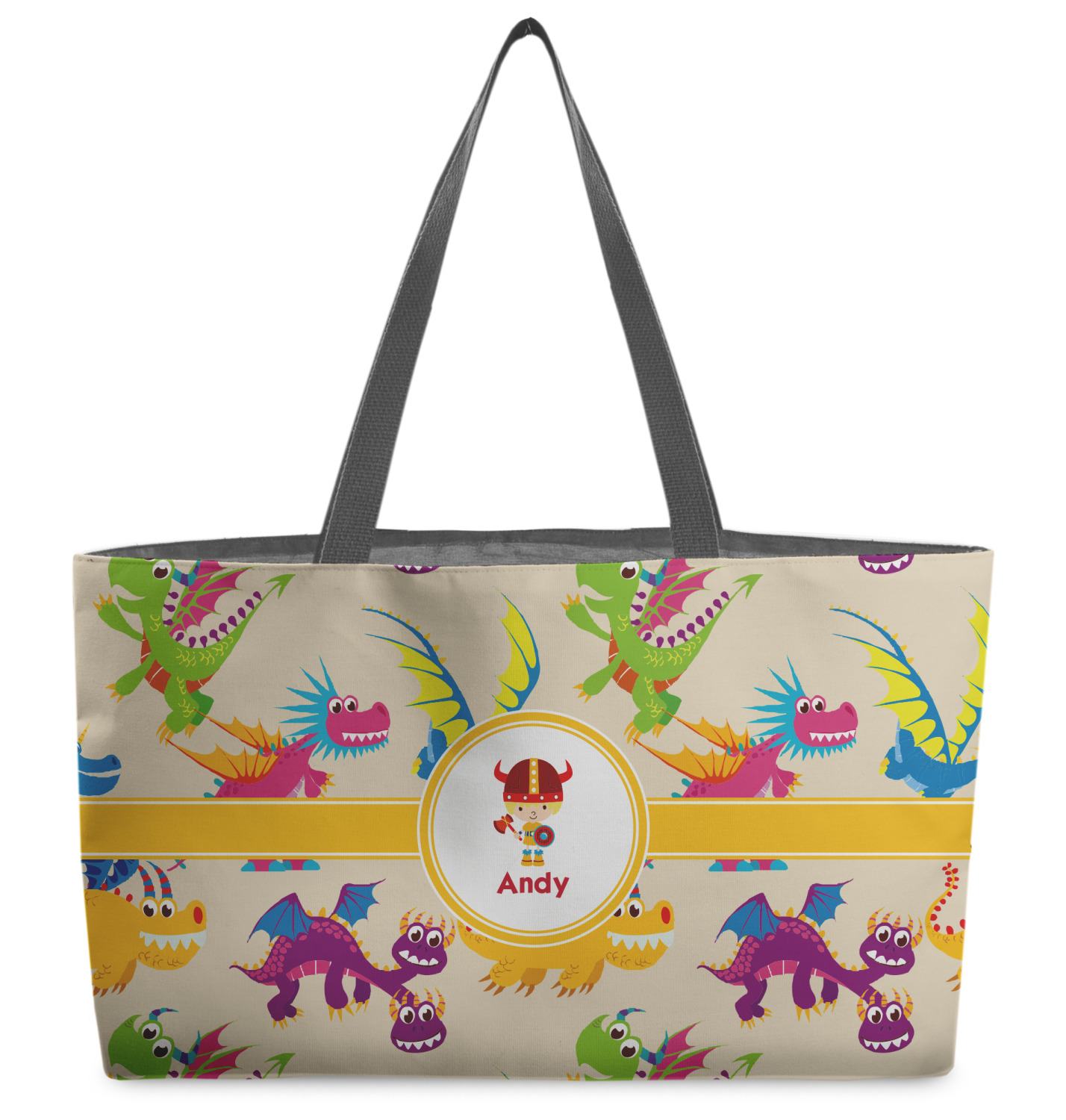 A white outlined yellow band with a yellow circle label highlights the little dragon slayer. Change the hair color to match your little guy and add his name to make this a fun design for all dragon lovers.