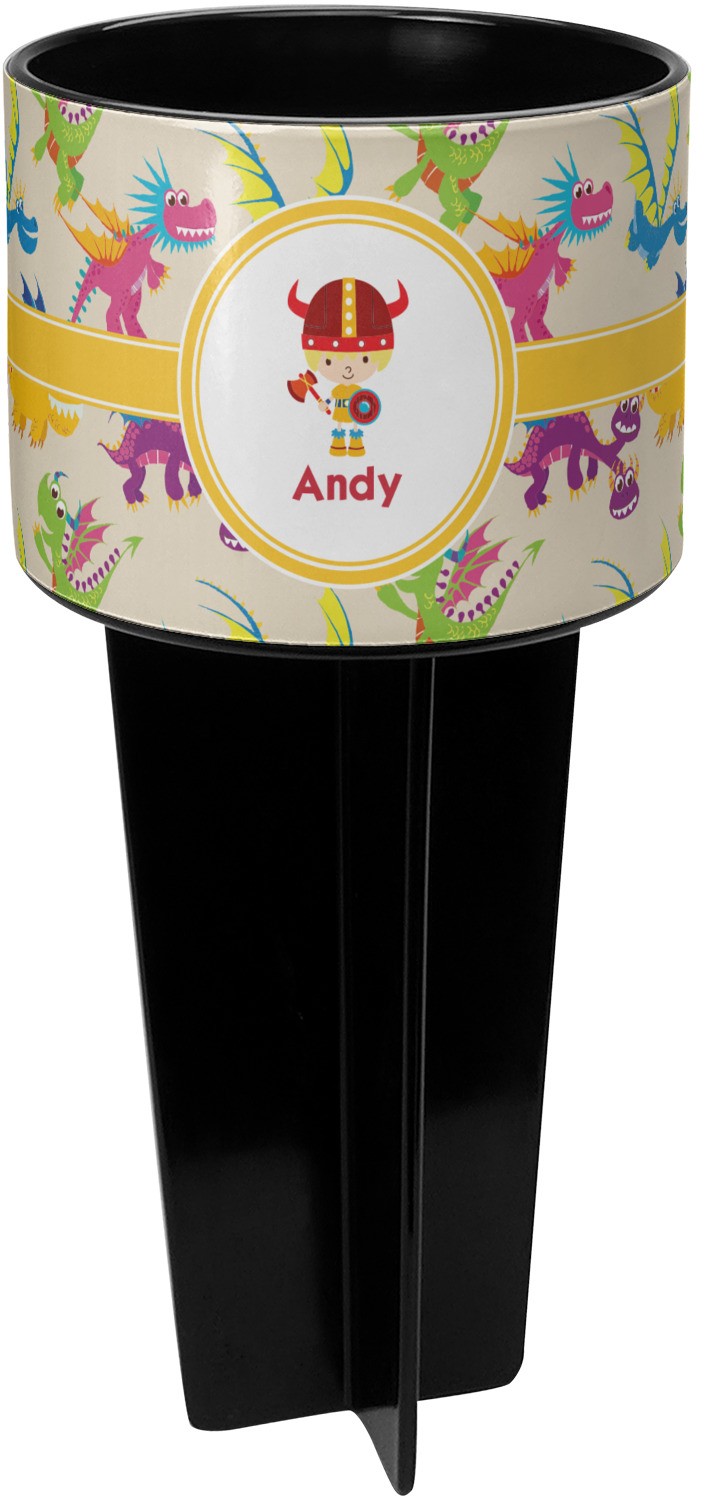 This cup holder has a large stake at its bottom that anchors it to the sand or ground below, while the cup holder rests above the stake. The entire drink holder is made of durable plastic and displays your customization around the cup holder portion. We sell these personalized beach spikers in two different colors: black and white.