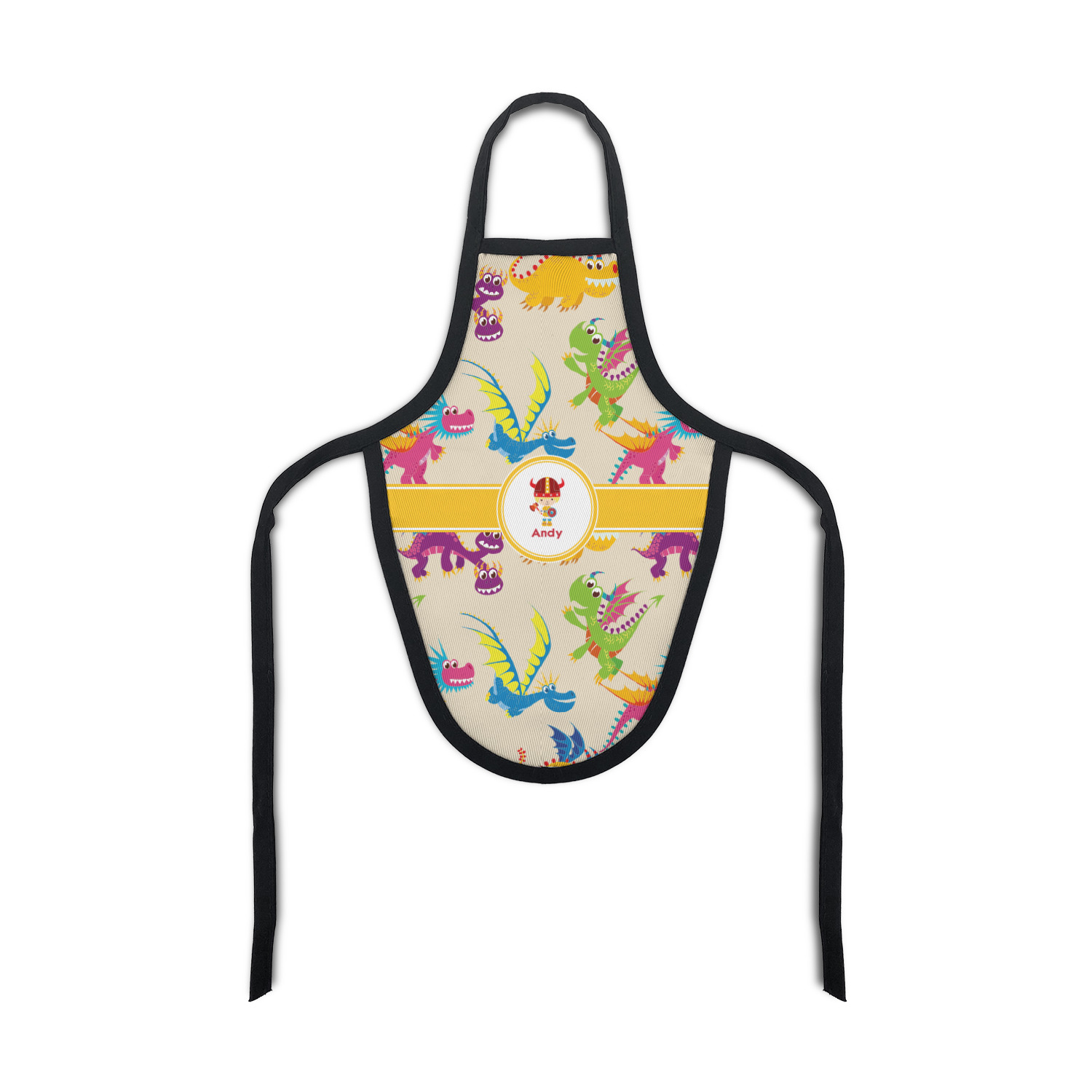 A white outlined yellow band with a yellow circle label highlights the little dragon slayer. Change the hair color to match your little guy and add his name to make this a fun design for all dragon lovers.