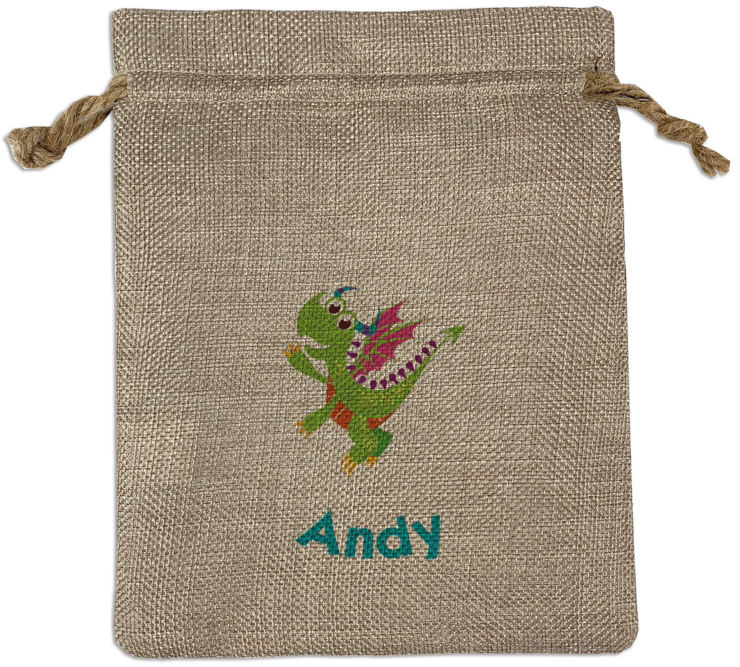 We sell our Burlap Gift Bags in 3 variant sized bags. Made with burlap polyester, each personalized bag can be secured with a twine drawstring pull. Your custom design is available to print on one side or both sides - completely up to you! The sizes of the bags measure approximately 4.5" x 6.5" for the smallest size, 6.5" x 8.0" for the medium size, and 6.5" x 13.5" for the large-sized bag.