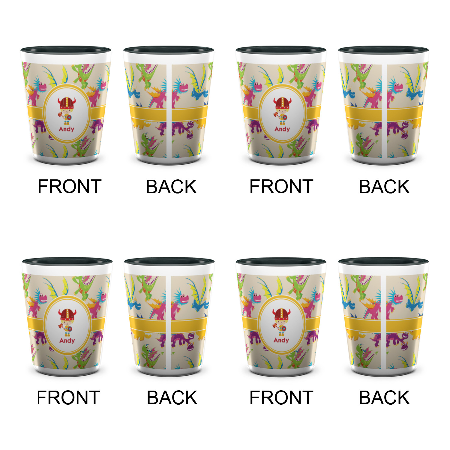 Made from ceramic these shot glasses are printed in full color with the design of your choice. These are a standard 1.5oz size and stand 2.25" tall. Available in a full white ceramic or a two-tone with a black color inside the shot glass. Buy a single or a set of 4, all of which can be designed separately to get you just what you want and need.