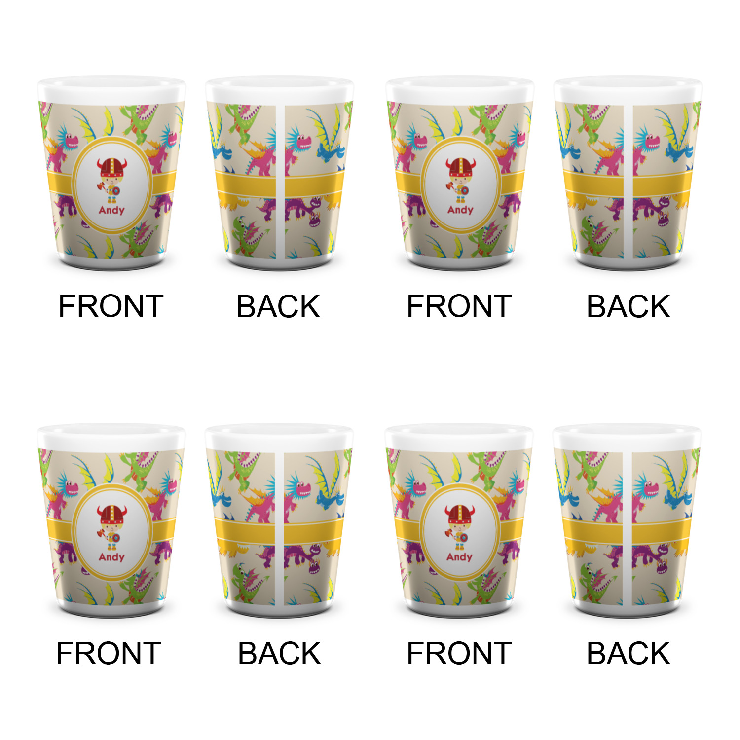 Made from ceramic these shot glasses are printed in full color with the design of your choice. These are a standard 1.5oz size and stand 2.25" tall. Available in a full white ceramic or a two-tone with a black color inside the shot glass. Buy a single or a set of 4, all of which can be designed separately to get you just what you want and need.