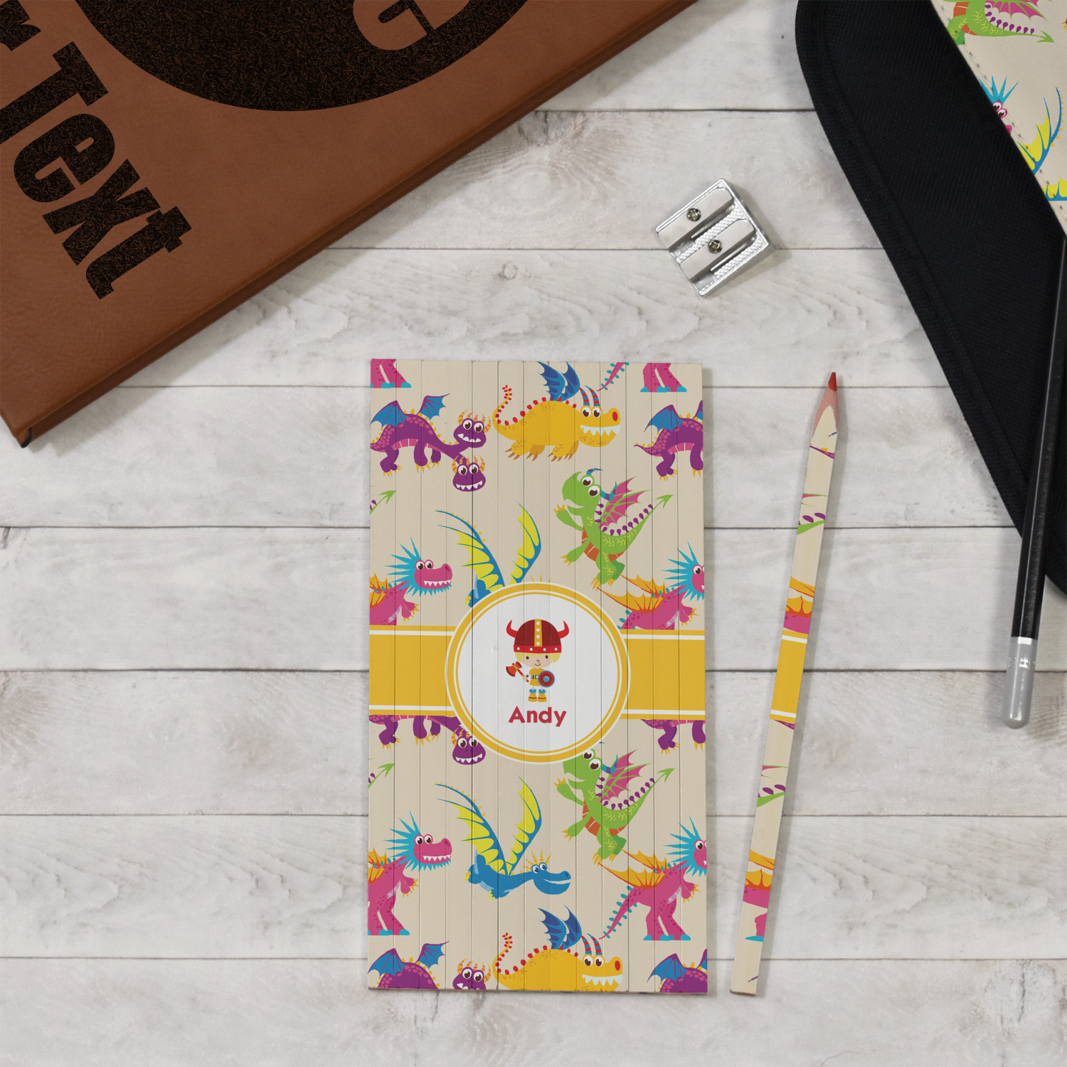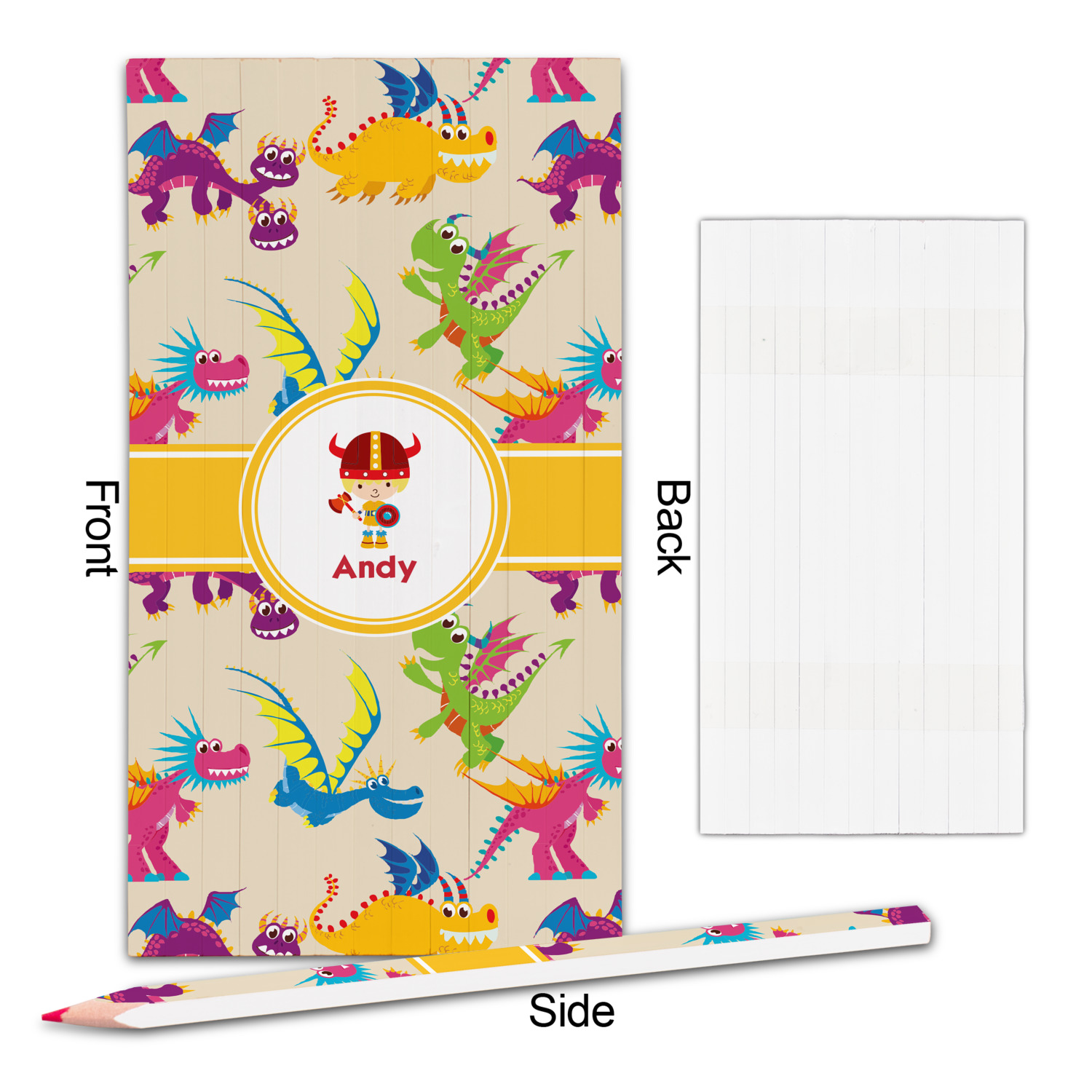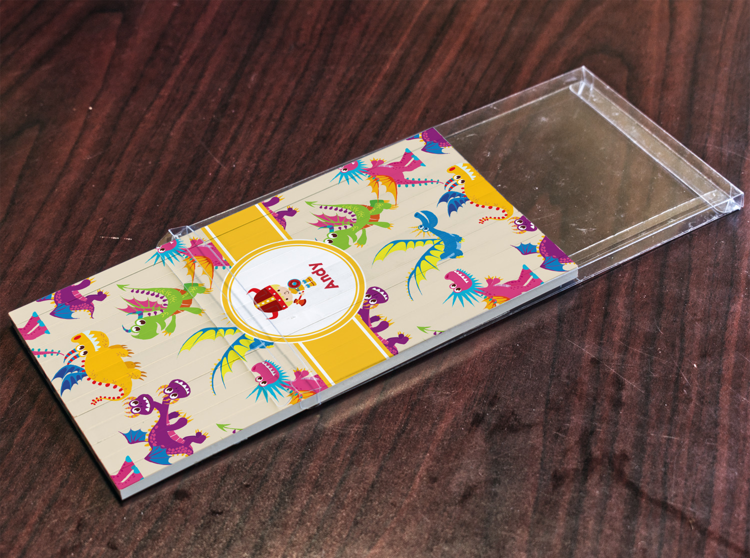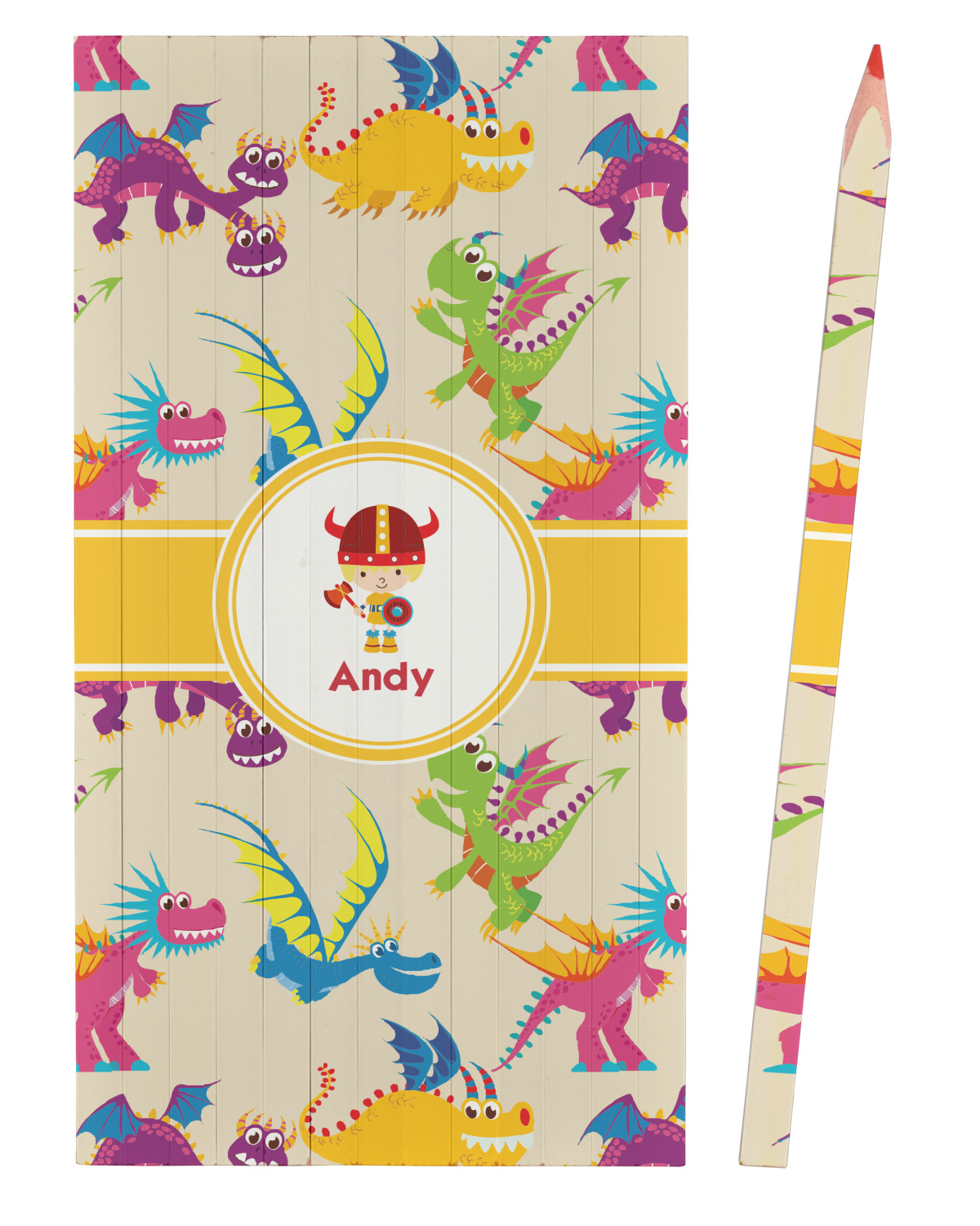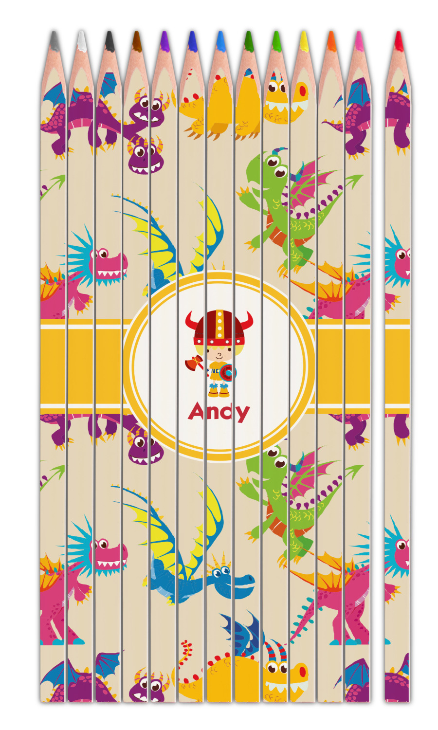 A white outlined yellow band with a yellow circle label highlights the little dragon slayer. Change the hair color to match your little guy and add his name to make this a fun design for all dragon lovers.
