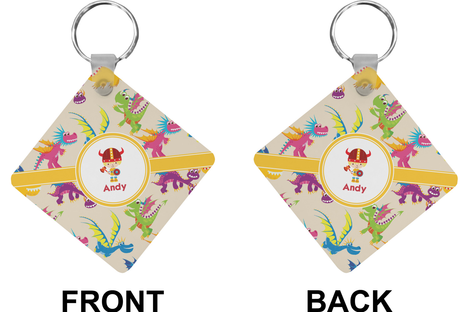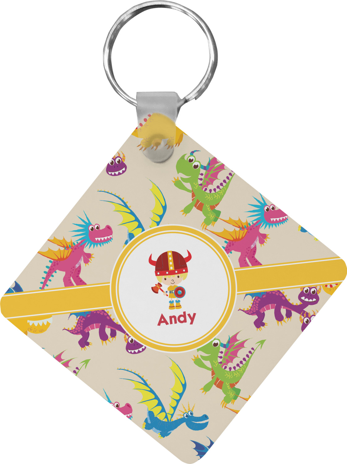 A white outlined yellow band with a yellow circle label highlights the little dragon slayer. Change the hair color to match your little guy and add his name to make this a fun design for all dragon lovers.