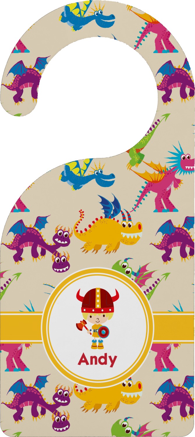 A white outlined yellow band with a yellow circle label highlights the little dragon slayer. Change the hair color to match your little guy and add his name to make this a fun design for all dragon lovers.