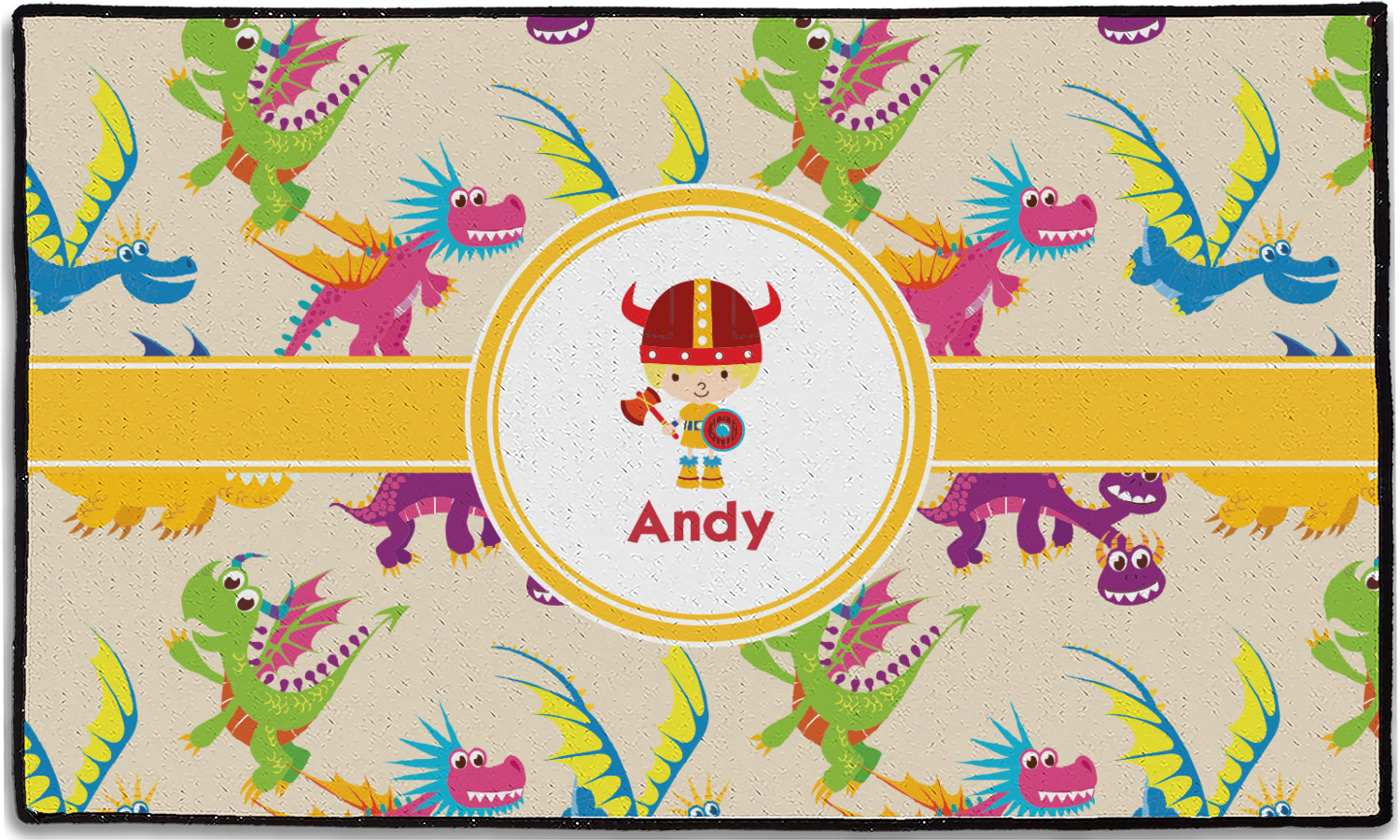 A white outlined yellow band with a yellow circle label highlights the little dragon slayer. Change the hair color to match your little guy and add his name to make this a fun design for all dragon lovers.