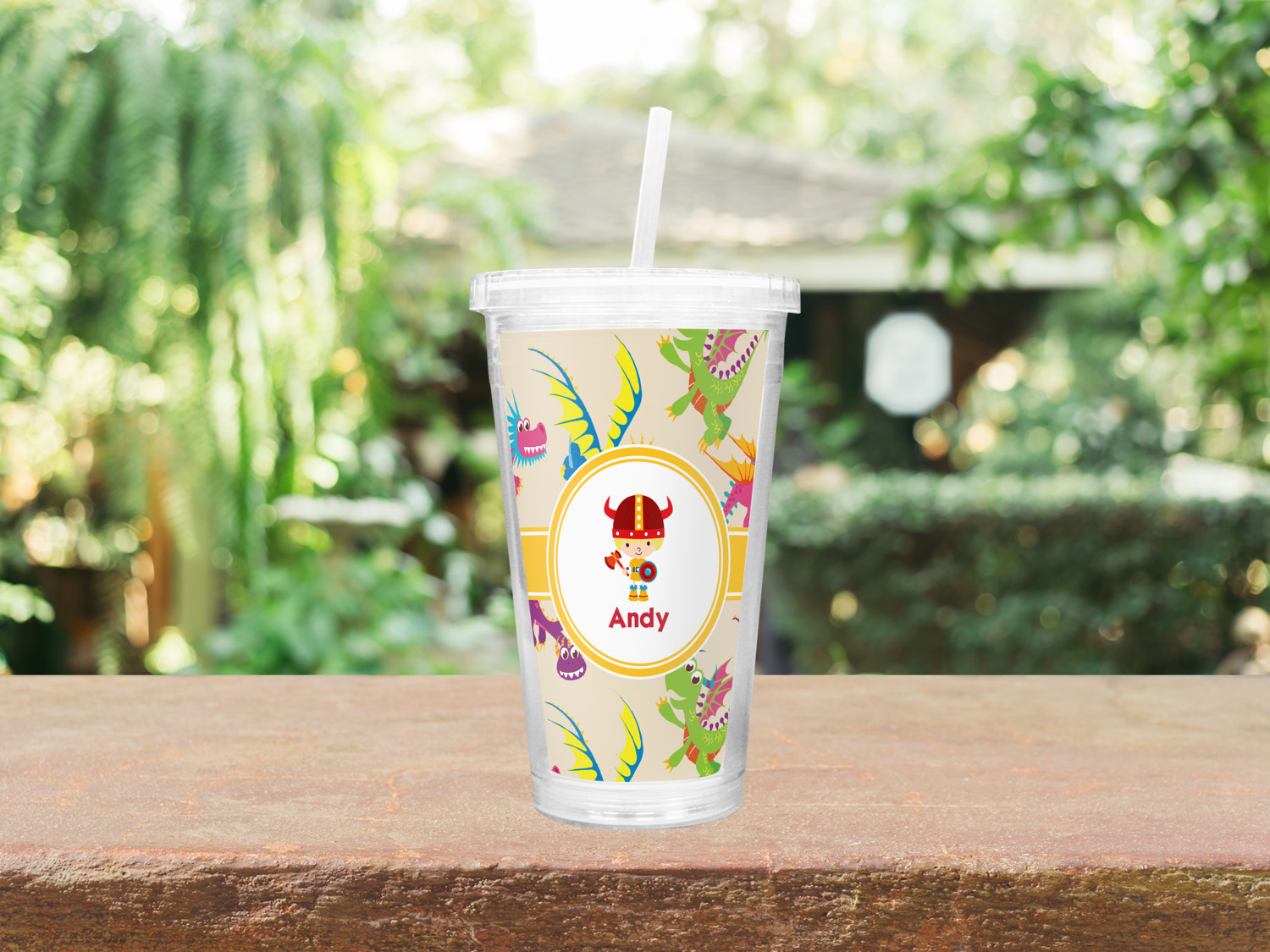 These tumblers are customized for you with a printed insert between the two walls of the cup. The lid screws on tight and helps to keep your drink cold.