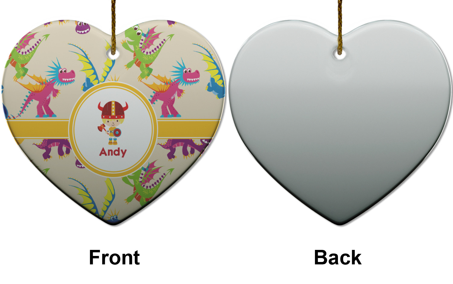 A white outlined yellow band with a yellow circle label highlights the little dragon slayer. Change the hair color to match your little guy and add his name to make this a fun design for all dragon lovers.