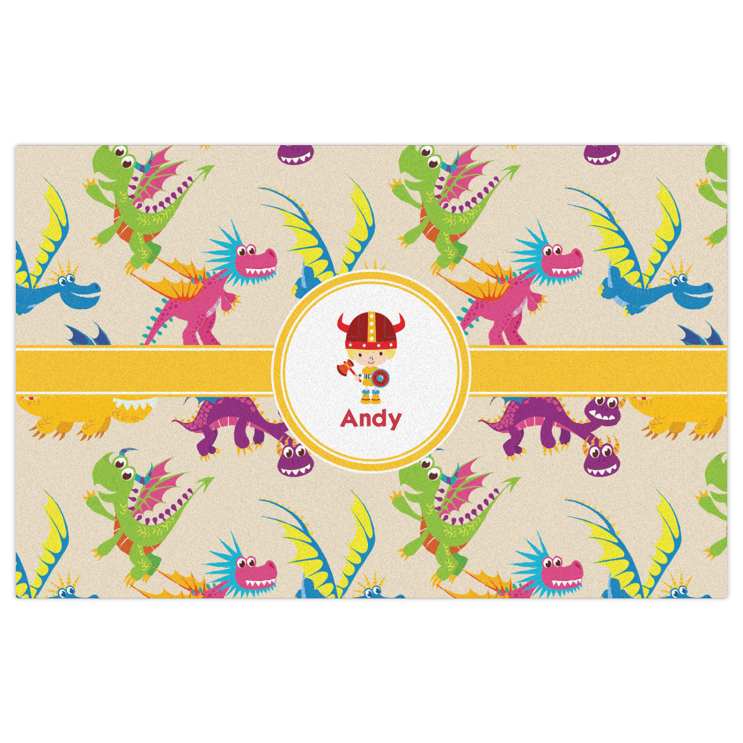 A white outlined yellow band with a yellow circle label highlights the little dragon slayer. Change the hair color to match your little guy and add his name to make this a fun design for all dragon lovers.