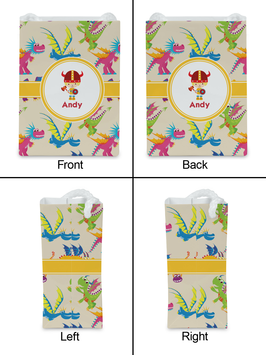 A white outlined yellow band with a yellow circle label highlights the little dragon slayer. Change the hair color to match your little guy and add his name to make this a fun design for all dragon lovers.