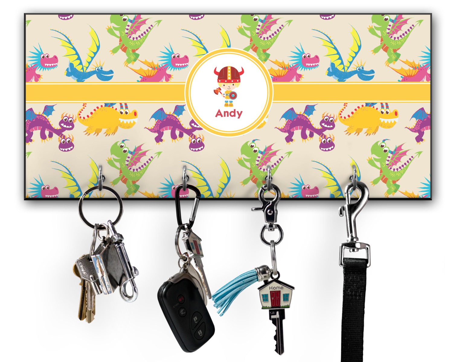 This 11" x 5" key hanger is made of sturdy wood and has four metal hooks lining the bottom. This is the perfect size for a family with several drivers. Not only can you hang keys on it though, but pet leashes and other small items. The board is black on the sides and back and is printed with the design of your choice on the front.