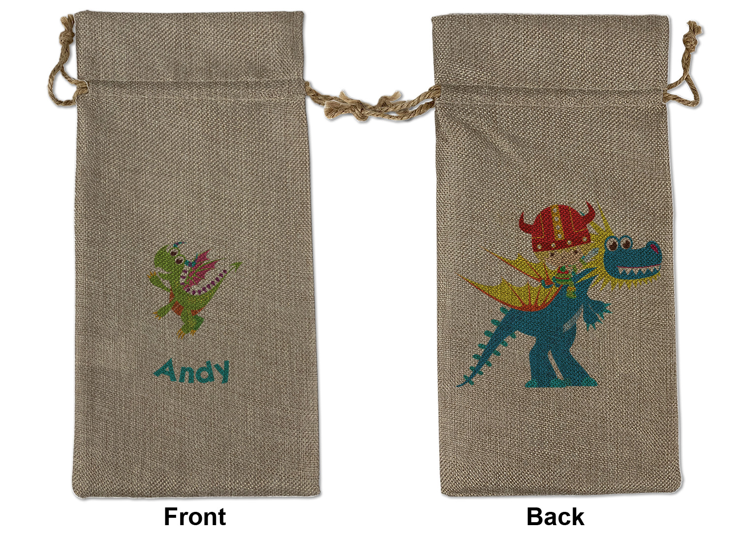 We sell our Burlap Gift Bags in 3 variant sized bags. Made with burlap polyester, each personalized bag can be secured with a twine drawstring pull. Your custom design is available to print on one side or both sides - completely up to you! The sizes of the bags measure approximately 4.5" x 6.5" for the smallest size, 6.5" x 8.0" for the medium size, and 6.5" x 13.5" for the large-sized bag.