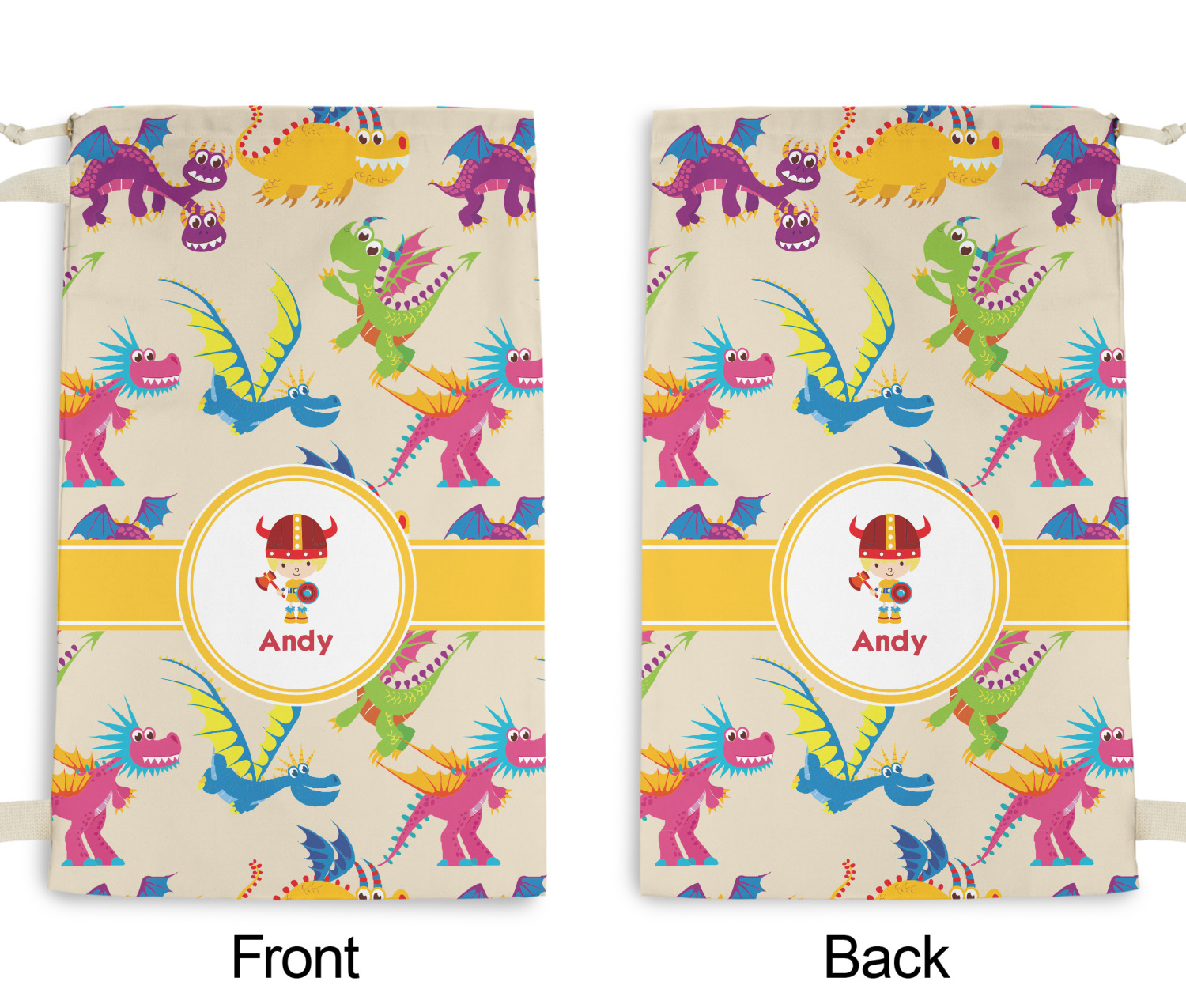 A white outlined yellow band with a yellow circle label highlights the little dragon slayer. Change the hair color to match your little guy and add his name to make this a fun design for all dragon lovers.