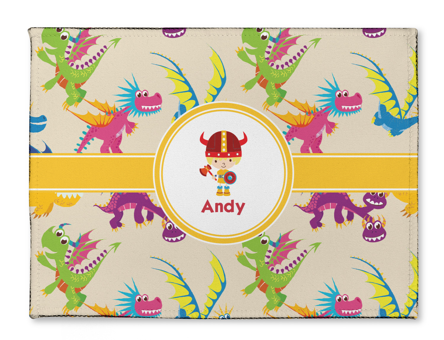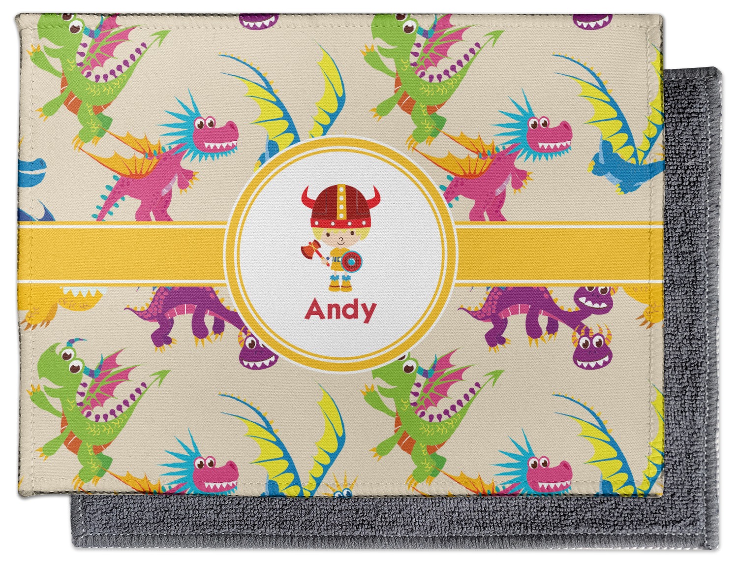 A white outlined yellow band with a yellow circle label highlights the little dragon slayer. Change the hair color to match your little guy and add his name to make this a fun design for all dragon lovers.