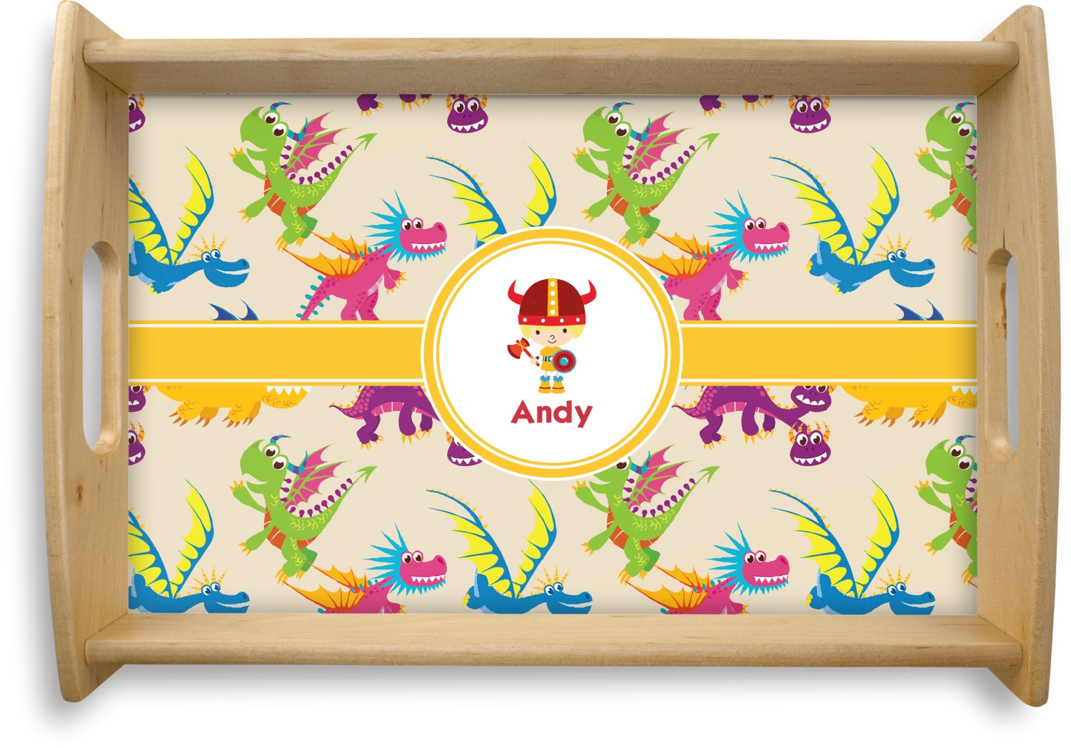 A white outlined yellow band with a yellow circle label highlights the little dragon slayer. Change the hair color to match your little guy and add his name to make this a fun design for all dragon lovers.