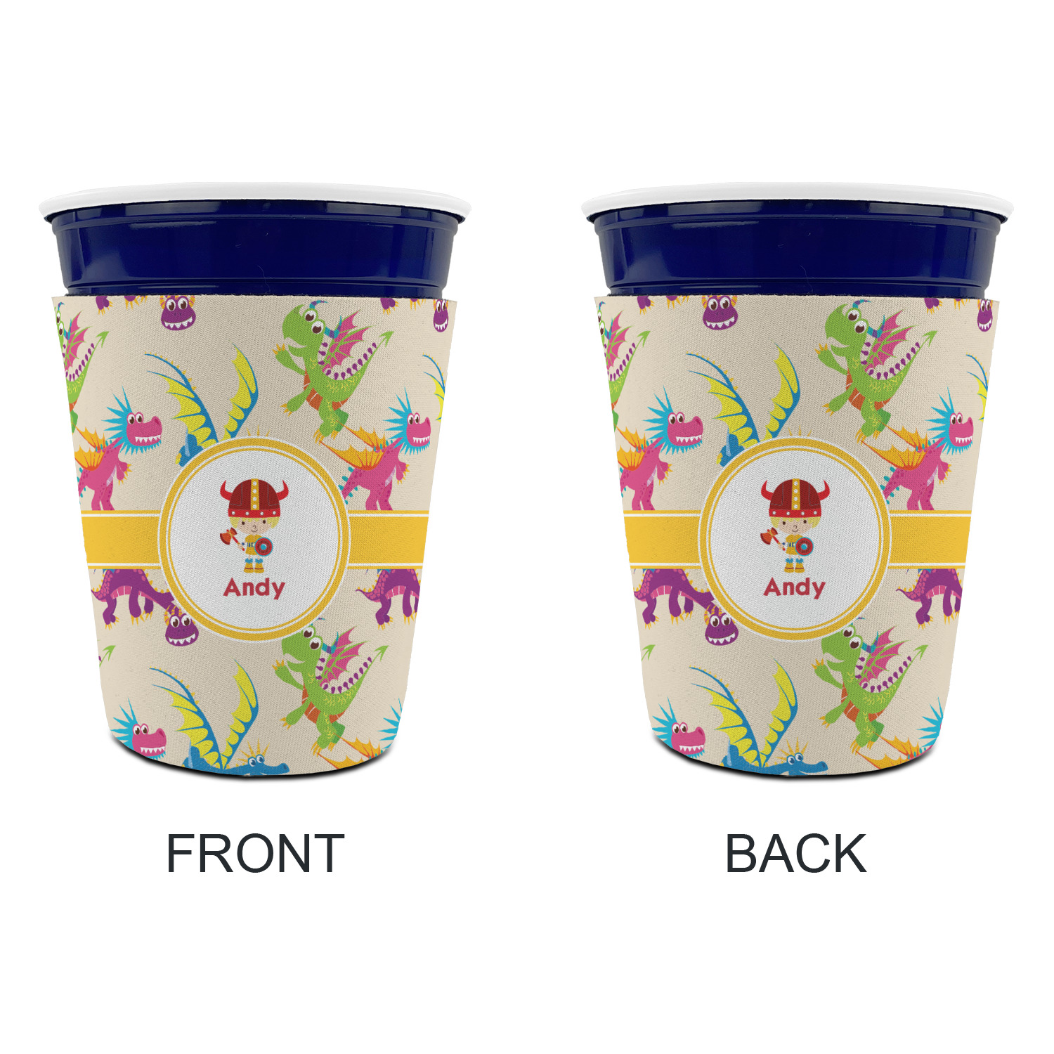 Made from neoprene with a polyester outer fabric and sewn seams, these premium quality party cup sleeves are very durable and will hold up to heavy use. They are available in 2 styles - with a bottom or just a sleeve to go around the outside of the tapered cup. The sleeve covers are about 4" tall and cover about 90% of the classic 16 oz. Solo cup.