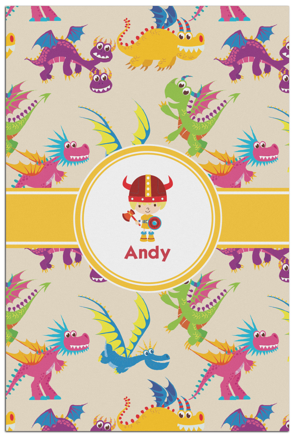 A white outlined yellow band with a yellow circle label highlights the little dragon slayer. Change the hair color to match your little guy and add his name to make this a fun design for all dragon lovers.