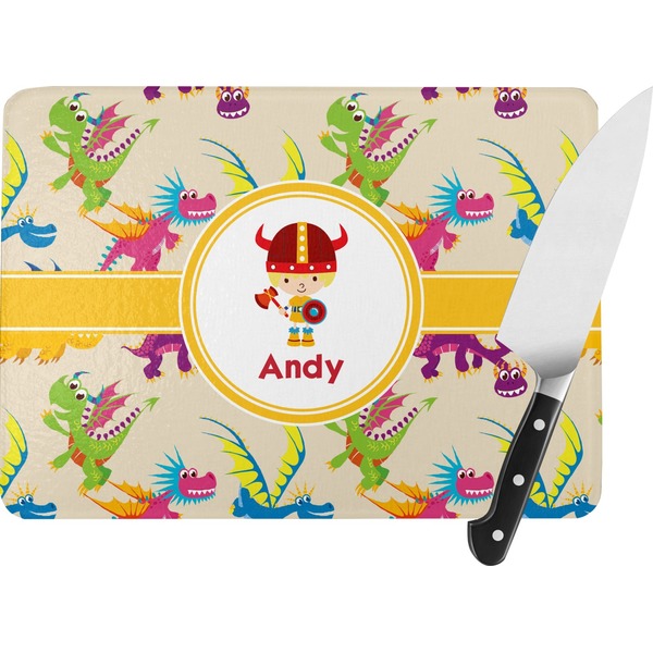 A white outlined yellow band with a yellow circle label highlights the little dragon slayer. Change the hair color to match your little guy and add his name to make this a fun design for all dragon lovers.