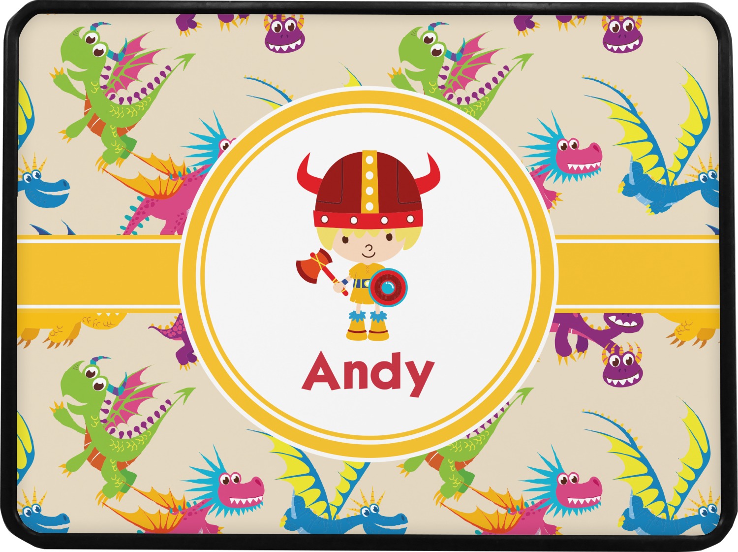 A white outlined yellow band with a yellow circle label highlights the little dragon slayer. Change the hair color to match your little guy and add his name to make this a fun design for all dragon lovers.