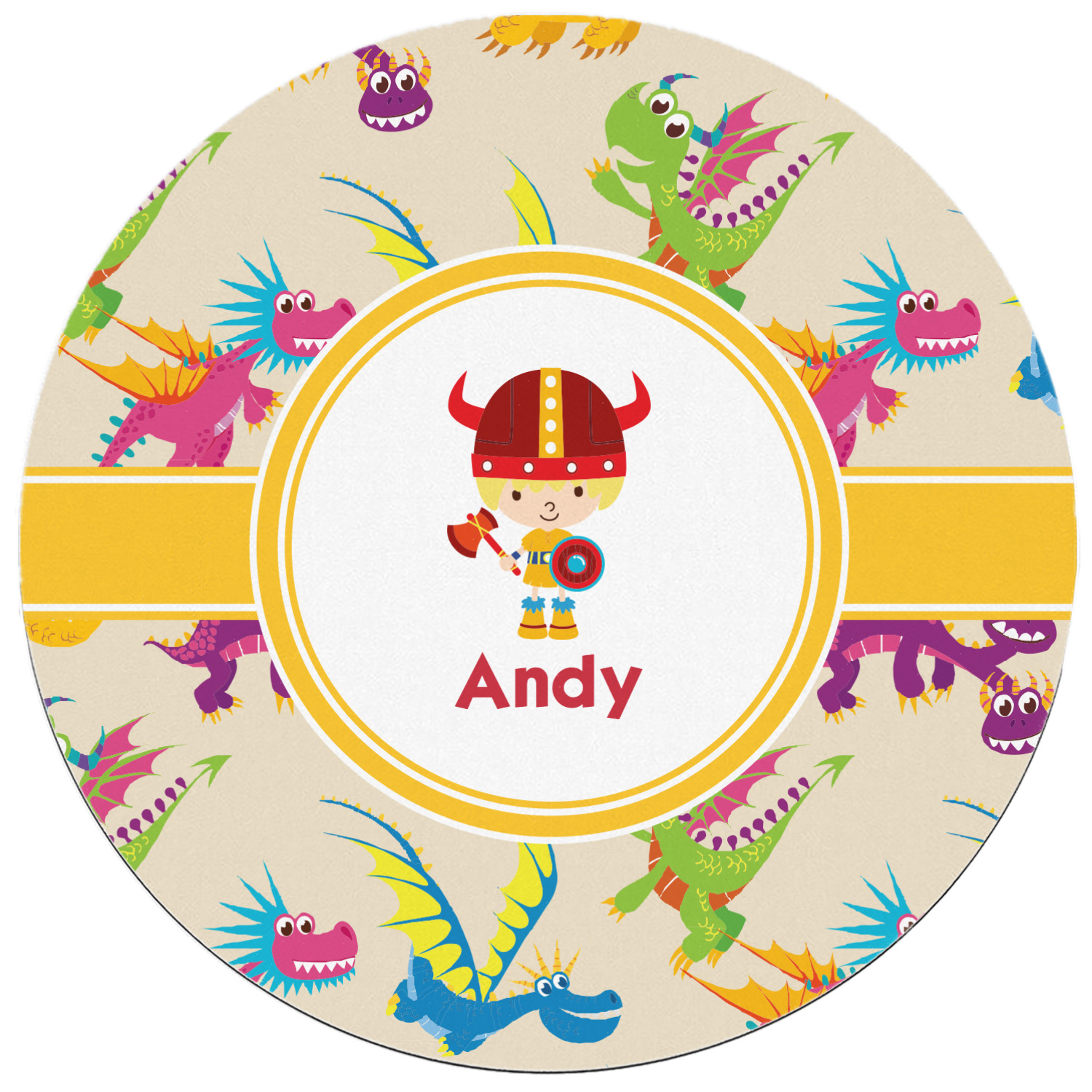 A white outlined yellow band with a yellow circle label highlights the little dragon slayer. Change the hair color to match your little guy and add his name to make this a fun design for all dragon lovers.