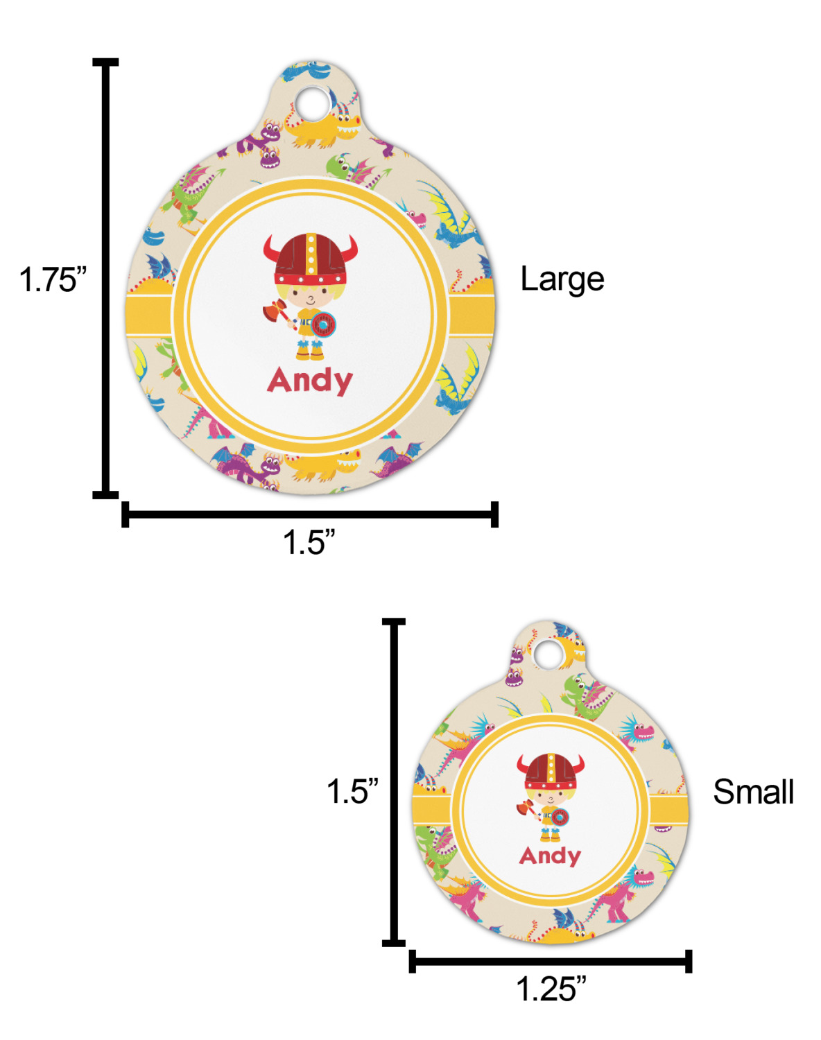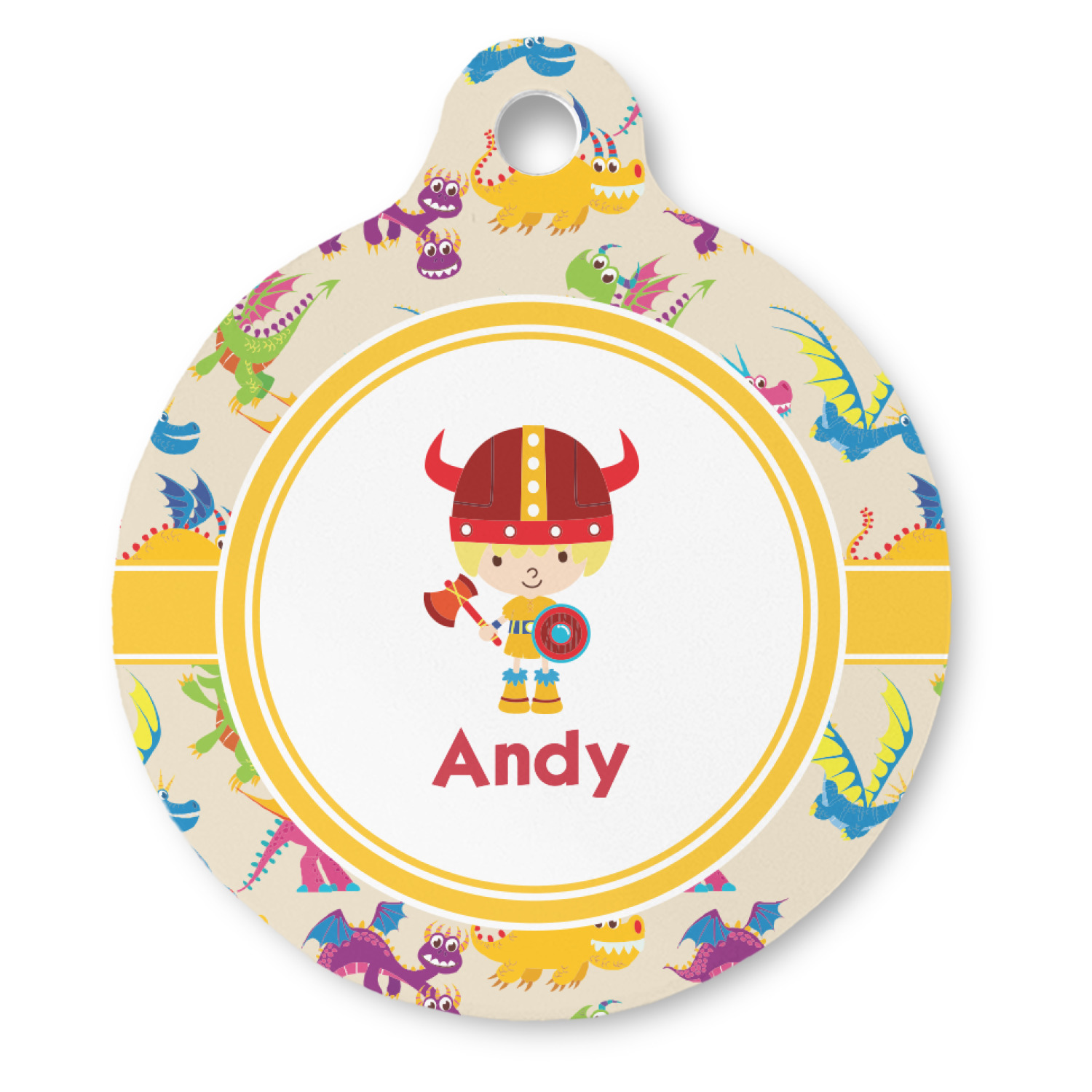 A white outlined yellow band with a yellow circle label highlights the little dragon slayer. Change the hair color to match your little guy and add his name to make this a fun design for all dragon lovers.