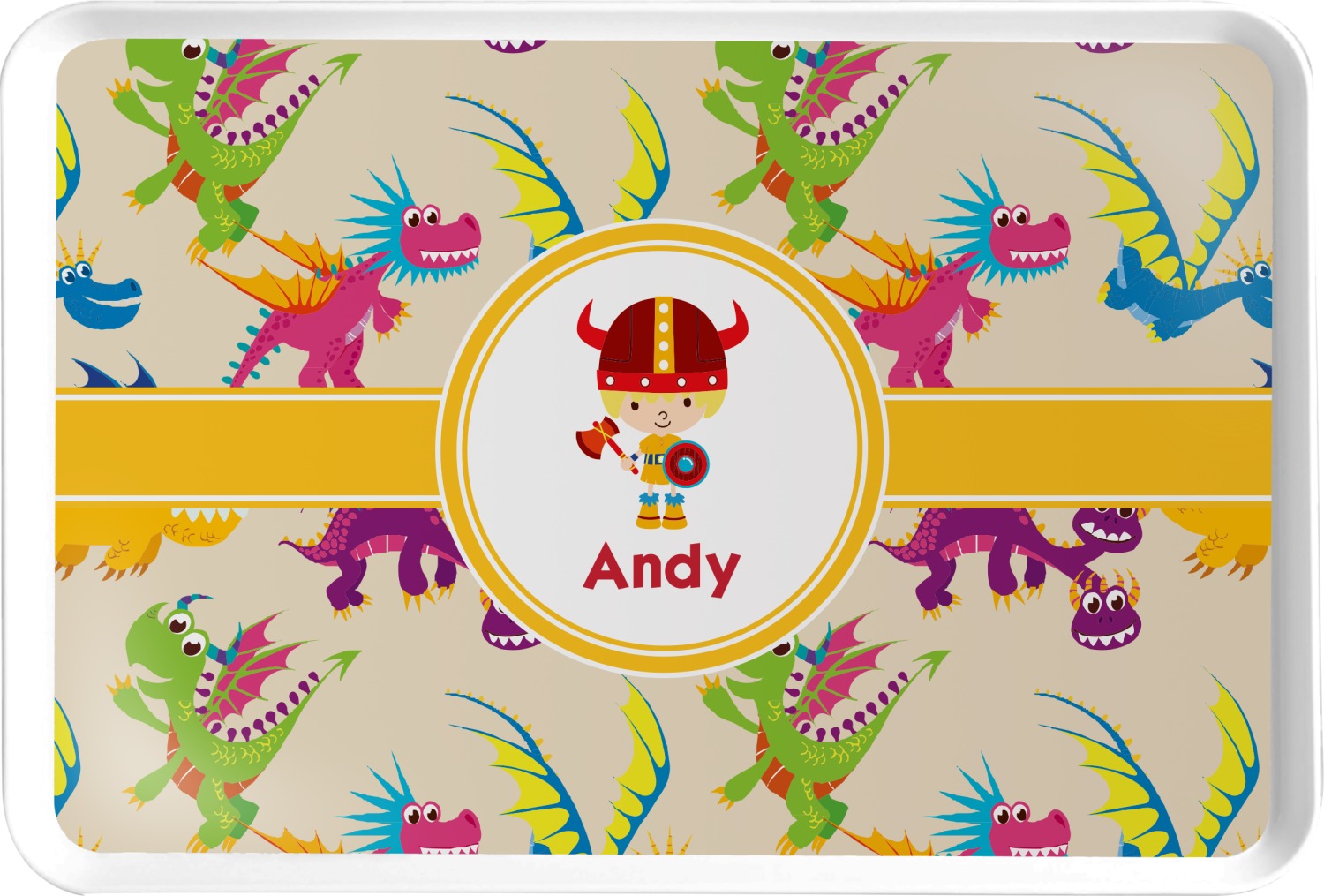 Made from a heavy melamine, these decorative trays are break resistant and are BPA free. At 14" x 9.25", these serving dishes are spacious enough to accommodate several drinks, bowls, or more. The tray features ridges underneath that allow for a sturdy stance upon any table or counter-top. We display your customization at the bottom of the tray's interior, while the remaining sides of the tray are a chic white.